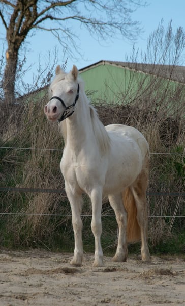 A VERY SPECIAL FIND: Excellent 2-year-old Welsh D mare with a dream temperament for sale Flower is a sweet, expressive, young mare with a stunning Cremello coat. She has grown up alongside her peers and within a herd. Her approximate height is 14.1 hh, and she has a strong, robust build. Her half-brother is a performance-tested stallion and a Siegerhengst in the ZfdP. Her dam is a premium mare awarded by the association and has only premium offspring. The sire is approved by the ZfdP. Her pedigree is very interesting for breeding, featuring bloodlines from Popsters, Nebo, and Synod. It is very difficult for me to part with her, but I cannot keep them all. I am looking for an experienced, loving new home. With her calm and trusting nature, she would be suitable for children and young riders—of course, with proper training! She is regularly vaccinated and dewormed and has been introduced to the farrier. In the herd, she is very social and tends to be lower in rank.