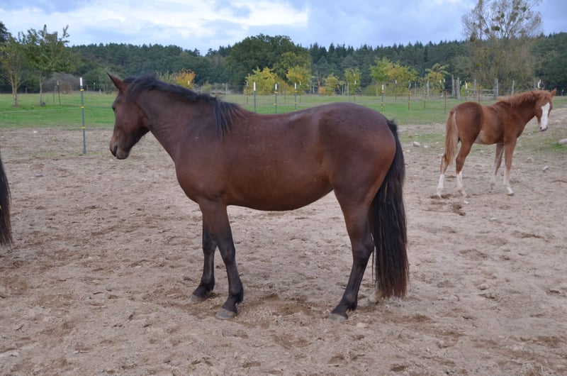 Kostal „Luna“ est née le 04.05.2022 dans notre écurie. Elle est issue du hongre Welsh D „Finkos Tywysog“ et de notre jument Kostal „Skyla“. Race : Welsh D Sexe : Jument Âge : 3 ans Couleur : Bai Utilisation : Loisirs, Élevage, Dressage Directement du éleveur Description : Luna est issue de notre propre élevage et grandit de manière appropriée avec d'autres yearlings et juments. Lors de la présentation des poulains en M-V, elle a été primée en tant que « Poulain Élite ». C'est une jeune jument sociable et désireuse de travailler. Elle connaît le transport en van et se comporte bien chez le maréchal-ferrant. Comme tous nos poneys, elle est pieds nus. Luna a une base solide et un mouvement impressionnant. Elle vit avec nous en troupeau, dans un abri ouvert avec un paddock attenant. De plus, elle a un bon contact avec les humains. Actuellement, elle mesure 1,41 m. Prix : 5000,00 euros Nous avons également d'autres poneys de différents âges à vendre.