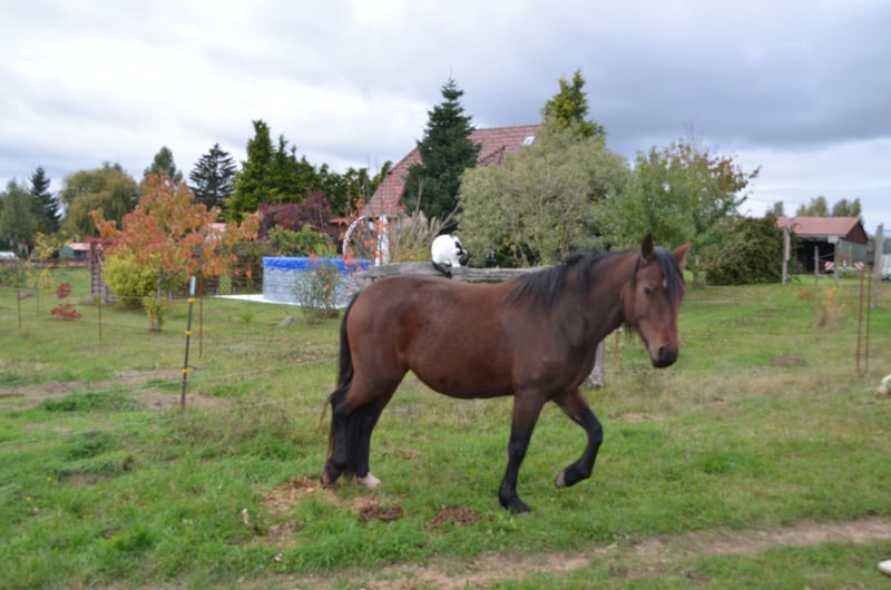 Kostal „Luna“ urodziła się 04.05.2022 na naszym gospodarstwie. Pochodzi od ogiera Welsh D „Finkos Tywysog“ i naszej klaczy Kostal „Skyla“. Rasa: Welsh D Płeć: klacz Wiek: 3 lata Kolor: kasztanowy Przeznaczenie: rekreacja hodowla ujeżdżenie bezpośrednio od hodowcy Opis: Luna pochodzi z własnej hodowli i rośnie w odpowiednich warunkach z innymi źrebakami i klaczami. Na pokazie źrebiąt w M-V została nagrodzona jako „źrebak elitarny”. Jest to towarzyska, chętna do pracy młoda klacz. Zna jazdę w przyczepie i nie ma problemów u kowala. Jak wszystkie nasze ponies, jest nieokutą. Luna ma mocną budowę i imponujący ruch. Mieszka z nami w stadzie, w otwartym boksie z przylegającym padokiem. Dodatkowo ma dobry kontakt z ludźmi. Obecnie ma wysokość 1,41 m. Cena: 5000,00 Euro U nas są również inne konie w różnym wieku na sprzedaż.