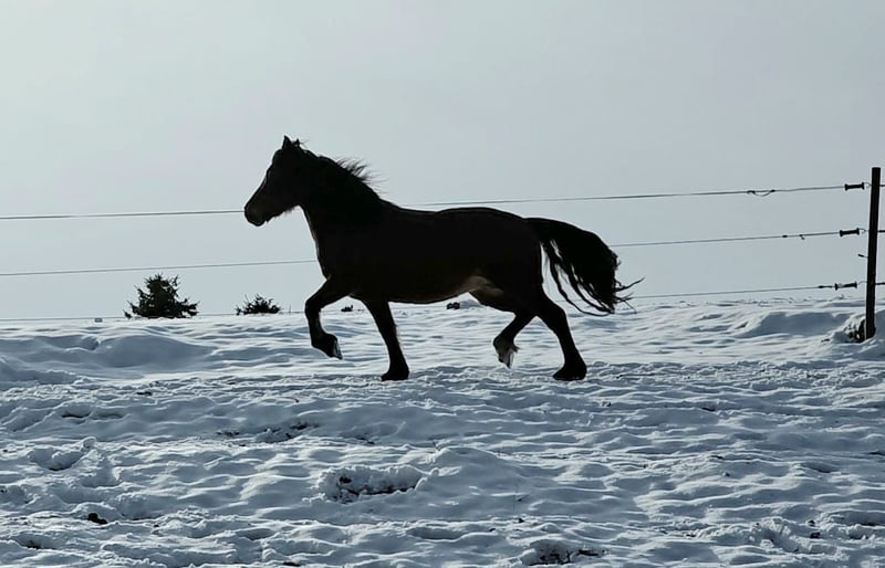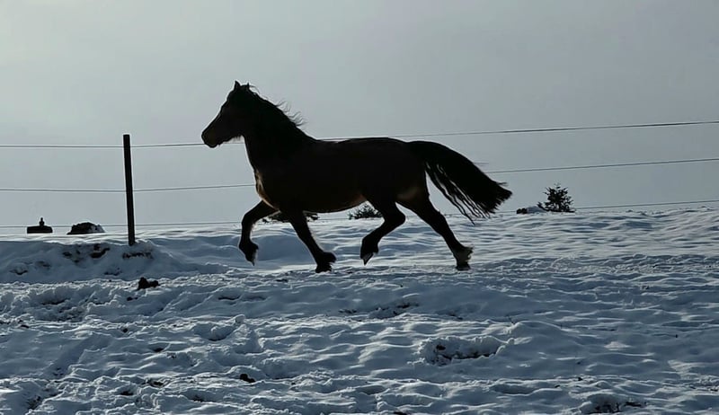 Travenas Samira 4 anni Non è ancora stata montata. Per l'autocostruzione: Samira ha già ottenuto il premio di Verband. Quest'anno ha partorito una puledra che è stata premiata. Nel video aveva 3 anni, quando ha ricevuto il premio di Verband. È di carattere tranquillo e potrei immaginarla anche come pony da tiro. Suo fratello, Travenas Takoda Secret, è stallone approvato e ha superato la prova di prestazione in dressage con un punteggio di 9,39.