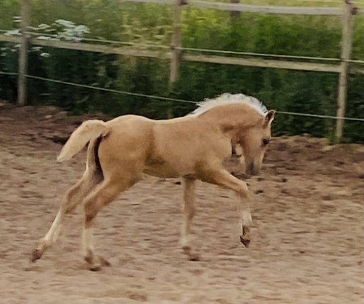 Unsere Enfys ist ein richtiger Schatz, sie ist eine gut gelungene Stute um 147m/148m Stm. in schickem blonden Palomino. Enfys heißt übersetzt Regenbogen. Ihr Vater ist der bekannte Stempelhengst Danaway Flashback und ihr Mutter die leistungsstarke Treidelhof Anwen. Sie ist begeisternd menschenbezogen und will bei allem gefallen. Sie ist immer mit Interesse und Lernwillen dabei. Sie kommt im Galopp, wenn wir sie zum Training rufen, sie liebt es. Wir sind gerade in der Anreitphase und gewöhnen sie Schritt für Schritt an die Abläufe. Enfys ist ein Schätzchen, sie begreift schnell und ist mit Engagement dabei. Immer sehr gut kontrollierbar. Im April haben wir sie für die Stutenleistungsprüfung angemeldet, sie wäre auch eine hervorragende Zuchtstute. In der Herde ist sie angepasst und sehr umgänglich. Für Enfys, wie für alle unsere Pferde, wünschen wir uns in erster Linie einen lieben Menschen mit Verantwortungsbewusstsein, der mit sich und dem Pferd sorgsam und geduldig umgeht. Unsere Pferde sind völlig unverdorben und haben nur gute Erfahrungen gemacht. Enfys ist Influenza, Tetanus und West Nil geimpft und wird 4x im Jahr entwurmt. Sie war stets gesund.