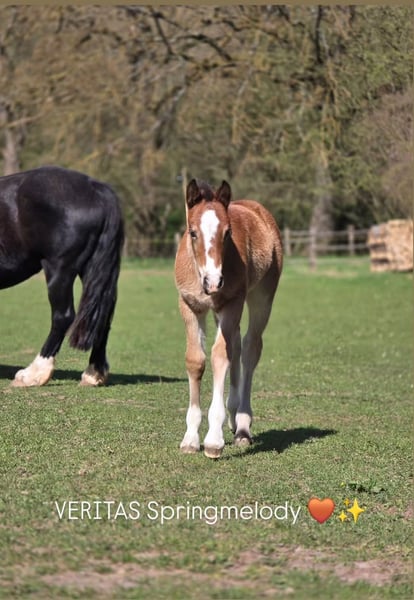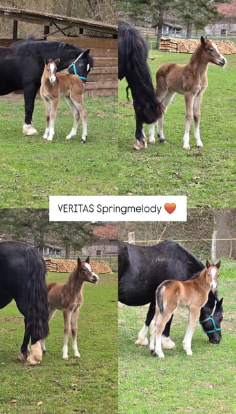 Veritas Springmelody 11.03.2026 Crumpwell Springsong 1,47 × Cornwall Optimus Prime 1,49 MV: COEDNEWYDD Eldorado Zum Verkauf steht ein typvolles, gesundes Welsh Cob Fohlen mit guter Abstammung. Es überzeugt durch sein tolles Erscheinungsbild, freundlichen Charakter und seine neugierige, ausgeglichene Art. Das Fohlen wächst artgerecht in der Herde auf, ist gut sozialisiert und kennt den täglichen Umgang mit Menschen. Es zeigt bereits schöne, schwungvolle Bewegungen – ideal für Freizeit, Sport oder Zucht. Bis zur Abgabe wird regelmäßig entwurmt und das Fohlen ABC geübt. Kann zur weiteren Aufzucht bei uns bleiben Bei Kaufzusage ist eine Anzahlung zu leisten, der Restbetrag ist spätestens zum Absetzen fällig. Bei Interesse freuen wir uns über Ihre Nachricht!