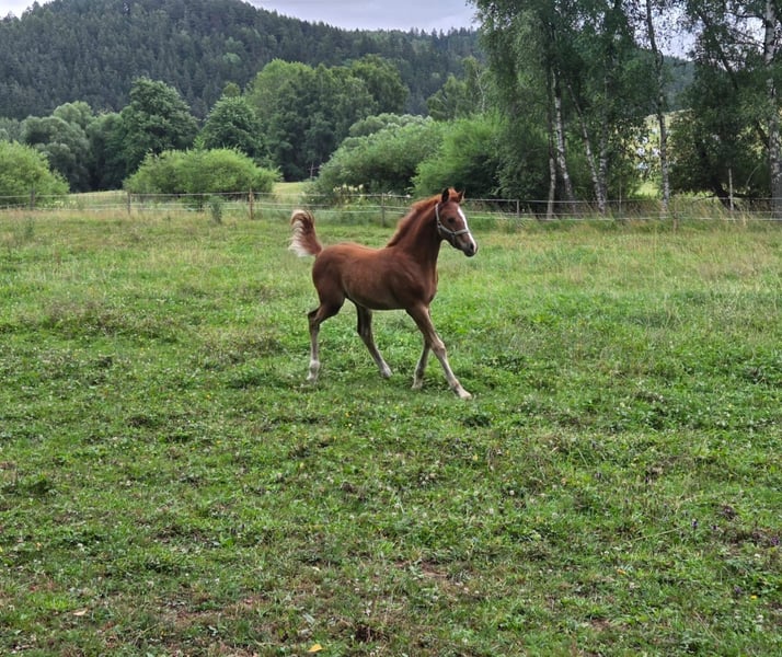Dakar was born 4/25, he is chestnut with white marks. Current height is around 140 cm so he’s really tall with strong body and absolutely great movement! I see potential for endurance or dressage with junior. He has sweet and enthusiastic character. Dakar is standing 20km from DE (Planá, Czechia) Sire: Marrion Sunny’s Imp, welsh cob D, show champion in CZ 2025 Dam: Desirah, Arabian, potential in endurance, currently 2 races, both with great results. For more info please contact me on whatsup or mail.