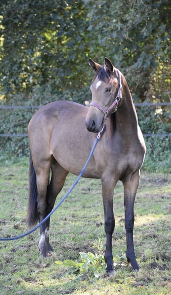 Glory’s Golden Lilly Lilly to roczna klacz po ogierze Don Cremello du Bois x Westerhuis Cupido x Nia Domo’s Bolero. Samodzielnie wyhodowaliśmy Lilly na naszej klaczy stamtąd. Pokazuje trzy dobre chodzenia i z pewnością jest obiecującym kandydatem na przyszłość. Oczekujemy, że wyrośnie na pięknego konia D pony. Zawsze była mocno oswajana z ręką, co sprawia, że jest łatwa w obsłudze, spokojna u kowala i chętnie wchodzi do przyczepy. Więcej informacji chętnie udzielimy przez wiadomość lub pod numerem 0653910039.