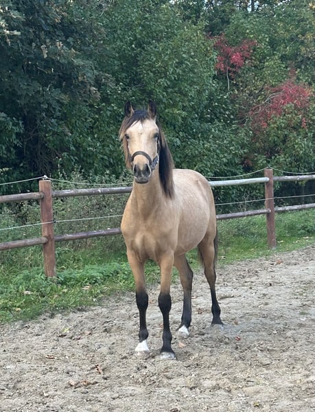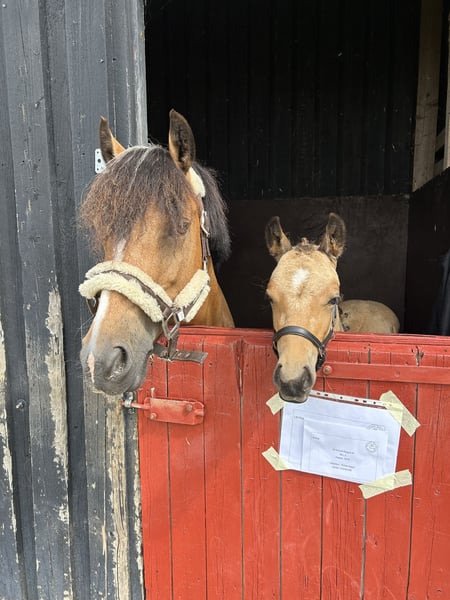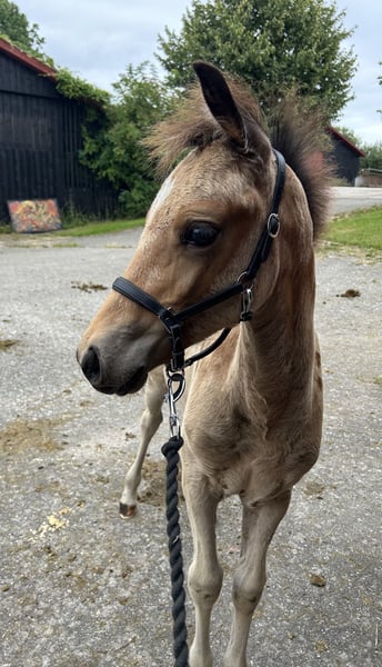 Very beautiful and charming little boy, with a lot of attitude and wild hair. He is by the Danish Warmblood stallion, Søbakkehus First Mover and with the Welsh mare, Gribsvads Abigail M to his mother. His mom is sister to Gribsvads Little Hector, who has competed a lot nationally dressage in Denmark with many wins and participated in the Danish championships. In Sweden, he got a bronze medal at the Swedish championships. His mom has ridden show jumping in Sweden as well. Only to a serious home.