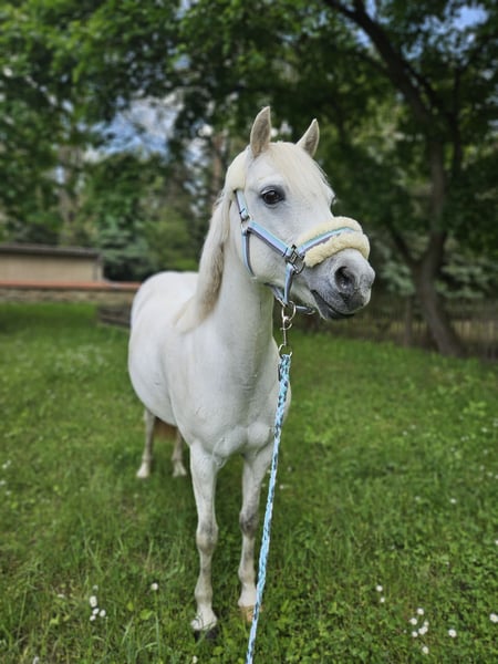 We are looking for a new home for our Trinket, as her rider has unfortunately grown too tall for her. Trinket is a genuine children’s pony that is always ready for fun. She learns very quickly and can even perform a few small tricks. Under saddle, she is equipped with Go, but she remains calm and careful to look after her young rider. She loves jumping, especially cross-country. Trinket is registered as a competition pony and has regularly participated in shows from lead-rein classes to small cross-rail jumps and walk-trot-canter dressage tests. She is comfortable riding alone or in a group in the field. She is always fearless and relaxed during turnout. We have also lunged her in harness and attached a tire, which she handled very calmly on her first try. I can also easily imagine her as a carriage pony. We purchased her at the age of four. She has never been seriously ill, is very gentle with the farrier and veterinarian, and loads and unloads from the trailer independently. Two years ago, Trinket had a beautiful filly. She accepted her immediately, and the birth went smoothly. She is also a very good mother. Since she was registered as a Welsh PB, she is only listed in the preliminary register of the German Riding Pony studbook. The filly can be viewed. We are seeking a loving home for Trinket, where she can once again be the center of attention and bring joy to a young person. She is not for sale to dealers or riding schools. Trinket can be sold with tack and accessories at an additional cost.