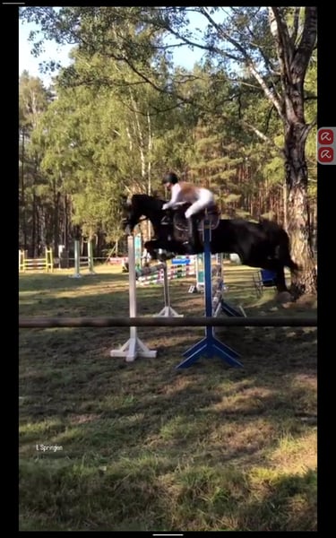 Beautiful Welsh-PB mare. She is not only a real eye-catcher but also a talented athlete. This mare has a great passion for jumping and shows a lot of ability, potential, and joy in her work. She is well-trained, but has not been ridden since the end of 2023 due to a lack of interest from my daughter. In the spring, my daughter started to retrain her, but motivation and consistency were lacking, so we gave Missi to a young rider in May. Unfortunately, this rider had to take an 8-week break in July for personal reasons, which meant she was not presented at any competitions. She is very sensitive, easy to ride in the contact, and responsive to aids, primarily responding to leg and weight aids, making her suitable for a sensitive and empathetic rider. She does not like pressure on the bit but is never aggressive. She does not know how to rear or buck. A pony with a big heart: if she feels that her rider loves and trusts her, she will go through fire for them. The mare is also sweet to handle and absolutely good to load. She is regularly vaccinated and dewormed. If you are interested or need further information, please feel free to contact me. Serious inquiries by phone only, please.