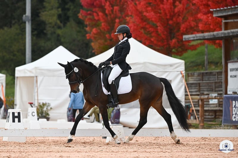 Olivia est une ponette de sport qui a joué un rôle majeur dans la progression de sa cavalière. Grâce à elle, sa cavalière est passée du niveau Poney 2 jusqu’au niveau Amateur 3 Grand Prix et As Jeunes 3, participant aux Championnats de France en étant la plus jeune de sa catégorie. Olivia a également accompagné sa cavalière jusqu’à l’obtention du Galop 7 à l’été dernier et lui a permis d'apprendre tous les mouvements de l'As Elite. Ponette expressive et généreuse, Olivia possède une vraie compréhension du travail de dressage. Elle maîtrise l’ensemble des exercices de la reprise As Élite / FEI, et montre une belle capacité à évoluer vers un travail toujours plus abouti. Olivia est une partenaire qui fait grandir son cavalier : elle permet d’apprendre, de progresser techniquement et de développer une vraie finesse d’équitation. Lorsqu’un climat de confiance est installé, elle offre de très beaux moments de travail, avec de la qualité, de l’expressivité et de la générosité. Aujourd’hui, sa cavalière s’oriente vers un projet sportif ambitieux à cheval, ce qui explique la mise en vente d’Olivia. Cette décision s’inscrit dans une continuité logique de parcours et non dans une remise en question des qualités de la ponette. Olivia conviendra parfaitement à un cavalier ou une cavalière déjà formé(e), souhaitant poursuivre sa progression en dressage avec une ponette capable d’emmener loin, tout en conservant de belles perspectives d’évolution, avec un bon encadrement. Une belle opportunité pour qui recherche une ponette ayant de nombreuses pages sportives à écrire. 📍 Ponette visible en Haute-Savoie 📹 Photos / vidéos sur demande 💬 Vente pour projet sérieux et réfléchi uniquement 📱 Téléphone / WhatsApp : 06 38 41 27 93