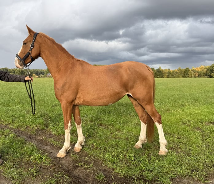 Handsome Gelderland mare seeking a new home 🏡 Romy is 4 years old and stands at 16.1 hh. She is friendly and easy to handle, with no stable vices. Recently trained in carriage driving and takes to it very well. She was saddle trained last year, but this has not been resumed this year. She is located in Zutendaal (BE).