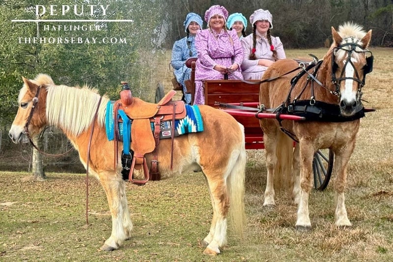 Deputy Dog is a 10 year old full blooded Haflinger gelding. He stands 14 hands tall. Deputy Dog is a superior wagon horse. He has been working as a team on both sides. He has been on lots of trail rides, pulling a single cart or carriage. He has an easy one-hand, neck, and rein. He will walk, trot, and lope both ways, catching his leads easily with an awesome stop. Deputy dog will pull from the saddle horn with no problem, whether you’re dragging logs, bricks, feed, troughs, etc. He carries his head very collected at all times. He is a super fun horse to ride. He crosses water logs and bridges with ease. He is not scared of wildlife or Livestock. He is very safe on highways and in traffic. He also rode in the national forest and in the fields checking cattle/Fence. Deputy Dog has been shot at for a long time with shotguns, rifles, and pistols. He is easy to shoot off of and will stay true on the rundown of a mounted shooting course. He will not duck or veer. He is honest. He is trained to come pick you up off of a step, a fence, the side of a trailer, etc. If you can climb up on it, he will come to you, or if you want to get on him regularly, he will stand and wait for you to get on him and ask him to go. He is very patient with mounting and dismounting. He is very easy to saddle, bridle, wash, load into a trailer, and catch. You can pick up all 4 feet with no problem. If you’re looking for that all-around type, using a horse for the whole family/farm that is suitable for anybody to ride or drive, check out Deputy Dog!
