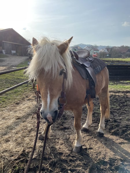 Schweren Herzens suche ich für meinen Haflinger Wallach (geb. 05/12) ein neues Zuhause. Er ist noch nicht lange bei mir, allerdings haben wir gemerkt, dass wir nicht ganz zueinander finden. Daher wünsche ich mir für ihn einen Menschen, der besser zu ihm passt und ihm gerecht wird. Er ist ein lieber, verspielter Kerl mit viel Persönlichkeit. Dabei testet er auch gerne mal seine Grenzen - man sollte sich also freundlich, aber konsequent durchsetzen können. Daher eher nicht für Anhänger geeignet. In den richtigen Händen ist er jedoch ein toller Partner. Er wurde sowohl Western als auch Englisch geritten, ist aktuell jedoch eine Weile nicht geritten worden. Er kennt Traktoren, Kühe, Hunde etc Stand in Offenstall- und Boxenhaltung. Verladen ist manchmal etwas problematisch, mit Ruhe aber machbar. Ich wünsche mir für ihn ein liebevolles, aber konsequentes Zuhause, wo er weiter gefördert wird und ankommen darf