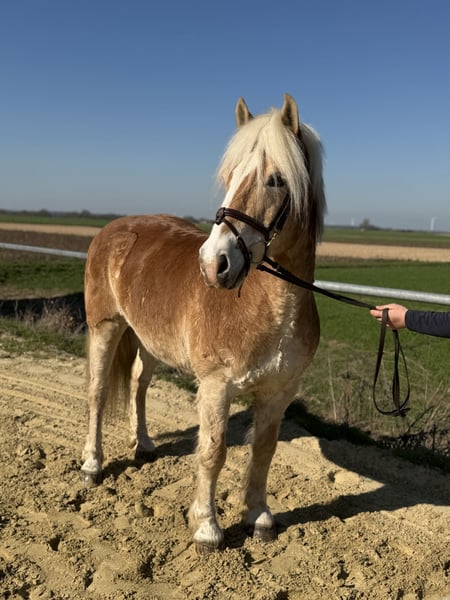 **Wunderschöner Haflinger Aron zu verkaufen!** Wir suchen ein neues Zuhause für unseren lieben Aron, einen 2008 geborenen Haflinger. Mit einer Größe von 1,40 m ist er ein absolut tolles Pferd, das sich brav reiten lässt und sowohl für Kinder als auch für Erwachsene geeignet ist. **Highlights von Aron:** - **Rittigkeit:** Aron ist zuverlässig im Gelände und lässt sich unkompliziert reiten. - **Umgang:** Er zeigt sich stets brav und ist von Kindern problemlos zu händeln. - **Offenstall-Gewöhnt:** Aron ist an Offenstallhaltung gewöhnt und würde sich sehr freuen, wieder in einem solchen Umfeld zu leben. - **Vielseitig einsetzbar:** Ideal für Reitschulen oder als Therapiepferd für beeinträchtigte Menschen. Mit ein wenig Ausbildung kann er sein volles Potenzial entfalten. - **Gesundheit:** Aron ist gesund, regelmäßig geimpft und entwurmt. **Besonderes Angebot:** Bei sofortiger Mitnahme erhalten Sie 5% Rabatt auf den Verkaufspreis! **Testmöglichkeit:** Wir bieten Ihnen die Möglichkeit, dieses Pferd eine Woche bei uns zu testen. Diese Probewoche kann von talentierten Trainern begleitet werden, und Sie haben die Option, eine Kombination aus Unterricht und Testen zu buchen. Bitte beachten Sie, dass dies mit einer Probegebühr verbunden ist und diese nicht vom Kaufpreis abgezogen wird. **Probereiten:** Gerne können Sie ihn bei uns anschauen. Die Kosten für das Vorreiten/Vorführen oder Probereiten betragen 30 € pro Person. Aron ist ein treuer Begleiter, der das Leben bereichert. Wenn Sie auf der Suche nach einem liebevollen und zuverlässigen Partner sind, dann ist Aron genau der Richtige für Sie! **Interesse?** Kommen Sie vorbei und lernen Sie Aron persönlich kennen! Sie können uns jederzeit kontaktieren, um einen Termin zu vereinbaren oder weitere Informationen zu erhalten.