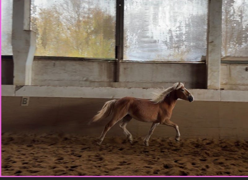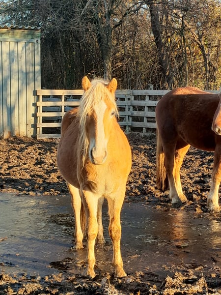 Waldzauber ist ein absolut treuer und aufgeschlossener Haffiwallach. Er kam als Absetzer im Herbst 2023 zu uns, ist mit vielen buntgemischten Hengsten groß geworden, erzieht inzwischen die Kleinen und kommt gut mit den Älteren und Gleichaltrigen zurecht. Menschenkontakt findet er klasse und verlässt sogar die Heuraufe, wenn man ihn ruft. Neue Dinge findet er sehr interessant und das erste Draufsitzen stand im Liegen im Laufstall statt. Wie auf dem Video zu sehen ist, ist er super lieb und nervenstark. Wir könnten ihn uns mit ein bisschen Erziehung gut in der therapeutischen Arbeit vorstellen. (Zur Zeit würde er wahrscheinlich mit in den Rollstuhl steigen). Aber sein sportlicher Körperbau und seine guten Grundgangarten machen ihn ebenso für den ambitionierten Reiter interessant, wobei hier sein Alter berücksichtigt werden muss. Er sucht auf jeden Fall ein Zuhause mit seeeehr viel Zuneigung und Abwechslung.