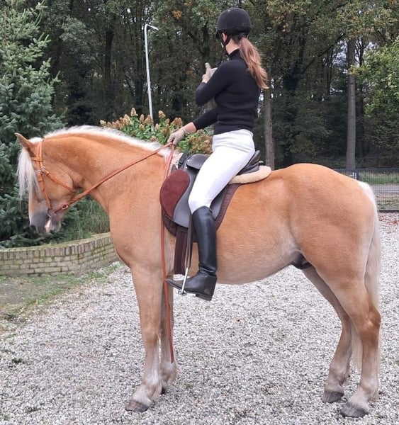 Zeer talentvol en uniek mooie sport Haflinger ruin te koop met veel uitstraling, sublieme beweging en een top bloedlijn! Geboren op 04-05-2022. Meet momenteel 1.50m en is nog in de groei. Inclusief stamboom, KVTH: A lijn! Met (voor)ouders die vele titels en predikaten op hun naam hebben als ster, sport en 1e premie. V: Anthony van de Wortel Hf.29433.K1 1.51m geb. 2006 NL 1e premie sport. V.V. Anthony liz.312/T 28842102 H.247410 geb. 2002 ADB FI V.M. Arachon liz.299/T.K1.NL Vader Athony van de wortel zeer talentvolle sport- en dekhengst. Voor het ontvangen van een YouTube video ontvang ik graag een bericht. INFORMATIE: -Zeer mooie verschijning. Sterke bouw maar toch elegant. -Prachtige, volle bos manen en staart. -Zeer makkelijk in de omgang, ontzettend mak, staat alles toe. Volgens dierenarts en tandarts zeer uniek hoe meewerkend en makkelijk hij is. -Zeer aanhankelijk en lief, slim, eerlijk en betrouwbaar. -Volledig verkeersmak. Bekend met alle landbouw voertuigen, vrachtverkeer en overige voertuigen en weggebruikers. -Bekend met meerdere soorten dieren. -Braaf bij de hoefsmid, dierenarts en tandarts. -Zadelmak en bekend met wandelen, longeren en grondwerk, etc. -Bekend met longe, pessoa, mentuig, barebackpad, zadel en hoofdstel, dekens en overige materialen. -Nergens bang voor. Schriktrainig stelde voor hem niets voor. -Getraind in Natural Horsemanship; Parelli. -Hele geschiedenis is bekend. In ons bezit sinds dat hij 6 maanden was. Direct alles geleerd en van alles al mee gedaan. -Uitermate geschikt voor de sport. Zowel dressuur als mennen of springen; waar hij echt talent voor toont. -Erg leergierig en werkwillend paard. -Heeft altijd 24/7 buiten gestaan in paddock met in en uitloop stal, zomers weidegang. Staat onderaan in de rangorde. -Vrij van enige vorm van gebreken. Geen eczeem, hoefbevangenheid of overige kwalen. #Er is tot nu toe alleen een aanvang gemaakt met stappen onder het zadel. Gezien de bak met de huidige weersomstandigheden amper bruikbaar is, zal dit niet verder opgepakt kunnen worden momenteel. Hij pakt alles verder zeer snel en zeer makkelijk op. Gezien zijn jonge leeftijd willen we niets overhaasten. Proef rijden is om deze redenen niet mogelijk. Hij is dus verder nog volledig naar eigen hand te zetten. Een beginnende ruiter is dan ook niet diegene die wij als toekomstig eigenaar zien.# Foto's zijn van alle leeftijden, van nu tot en met veulen. Ruiter op de foto is 1,75m. Laatste foto's zijn van vader en moeder. Vraagprijs: €6000,- Eventueel nieuw bruin lederen veelzijdigheidszadel ter overname voor €175,- en mogelijkheid tot overname van verdere benodigdheden. Filmpjes van onder het zadel op aanvraag. Zie mijn andere advertentie voor verkoop ander paard. Paarden mogen weg in verband met beëindigen hobby wegens gebrek aan tijd. Ze staan ons zeker niet in de weg! Bent u enthousiast geworden en zou u dit prachtig dier graag ontmoeten, dan hoor ik graag van u! Op zaterdagen niet bereikbaar.