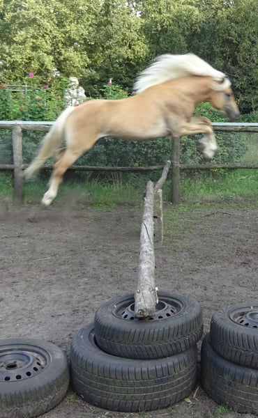 Sehr talentierter und einzigartig schöner Sport-Haflinger Wallach zu verkaufen, mit viel Ausstrahlung, hervorragender Bewegung und einer erstklassigen Blutlinie! Geboren am 04.05.2022. Derzeit misst er 1,50 m und wächst noch. Inklusive Stammbaum, KVTH: A-Linie! Mit (Vorfahren) die zahlreiche Titel und Prädikate tragen, wie Stern, Sport und Erste Prämie. V: Anthony van de Wortel Hf. 29433.K1, 1,51 m, geb. 2006, NL, Erste Prämie Sport. V.V.: Anthony, liz. 312/T, 28842102, H. 247410, geb. 2002, ADB FI V.M.: Arachon, liz. 299/T, K1, NL Vater Anthony van de Wortel ist ein äußerst talentierter Sport- und Deckhengst. Für ein YouTube-Video sende ich gern eine Nachricht. INFORMATIONEN: - Sehr ansprechende Erscheinung. Starke, aber elegante Konstitution. - Wunderschöner, voluminöser Langhaarschopf an Mähne und Schweif. - Sehr umgänglich, äußerst brav, lässt alles zu. Laut Tierarzt und Zahnarzt ist es äußerst selten, wie kooperativ und unkompliziert er ist. - Sehr anhänglich und lieb, intelligent, ehrlich und zuverlässig. - Vollverkehrssicher. Bekannt mit allen landwirtschaftlichen Fahrzeugen, LKW-Verkehr und anderen Fahrzeugen sowie Verkehrsteilnehmern. - Im Umgang mit verschiedenen Tieren vertraut. - Beim Schmied, Tierarzt und Zahnarzt brav. - Zügelfahrig und vertraut mit Spaziergängen, Longieren, Bodenarbeit etc. - Bekannt mit Longe, Pessoa, Kappzaum, Barebackpad, Sattel und Trense, Decken und weiteren Materialien. - Nichts vor Angst. Schrecktraining war für ihn nie ein Problem. - Ausgebildet in Natural Horsemanship; Parelli. - Komplette Geschichte bekannt. Seitdem er 6 Monate alt ist, in unserem Besitz. Alles sofort gelernt und bereits vieles gemacht. - Absolut sporttauglich, sowohl für Dressur, Kutschfahrten als auch Springen; zeigt dort echtes Talent. - Sehr lernwilliges und arbeitsfreudiges Pferd. - Hat stets 24/7 im Paddock mit Auslaufstall gestanden, Sommerweidegang inklusive. Steht unten in der Rangordnung. - Frei von jeglichen Mängeln. Kein Ekzem, Hufrehe oder andere Beschwerden. #Bisher wurde nur das Anreiten unter dem Sattel begonnen. Aufgrund der aktuellen Wetterbedingungen ist die Reitbahn momentan kaum nutzbar, weshalb das Training derzeit nicht weitergeführt werden kann. Er lernt alles sehr schnell und unkompliziert. Aufgrund seines jungen Alters möchten wir nichts überstürzen. Probereiten ist aus diesen Gründen nicht möglich. Er ist noch vollständig formbar nach den Wünschen des neuen Besitzers. Ein Anfänger ist daher nicht die Zielgruppe, die wir als zukünftigen Besitzer sehen.# Fotos zeigen ihn in verschiedenen Altersstufen, vom Fohlen bis heute. Der Reiter auf dem Bild ist 1,75 m groß. Die letzten Bilder sind von Vater und Mutter. Verkaufspreis: 6.000 € Optional kann ein neues braunes Vielseitigkeitssattel aus Leder für 175 € übernommen werden, ebenso besteht die Möglichkeit, weiteres Zubehör zu übernehmen. Videos unter dem Sattel sind auf Anfrage erhältlich. Bitte beachten Sie auch meine andere Anzeige für den Verkauf eines weiteren Pferdes. Die Pferde werden verkauft, da wir unsere Hobby aufgrund von Zeitmangel aufgeben. Sie stehen uns jedoch nicht im Weg! Wenn Sie Interesse haben und dieses wunderschöne Tier kennenlernen möchten, freue ich mich auf Ihre Nachricht! An Samstagen bin ich nicht erreichbar.