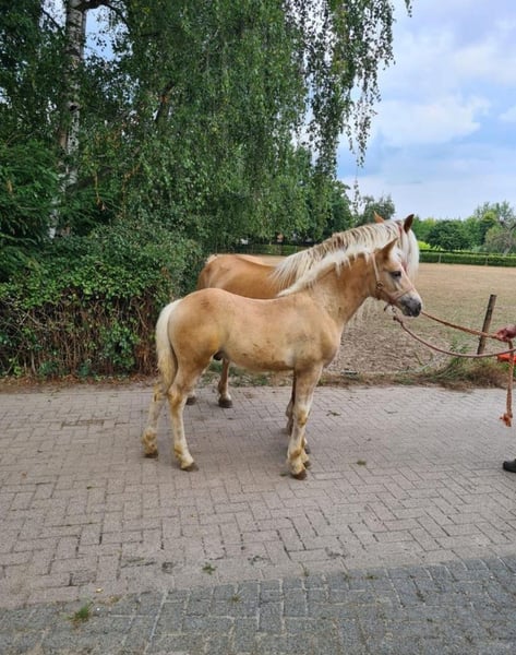 Highly talented and uniquely beautiful sport Haflinger gelding for sale, with great presence, superb movement, and an excellent bloodline! Born on May 4th, 2022. Currently measuring 1.50 meters and still growing. Includes pedigree, KVTH: A line! With (pre)parents holding numerous titles and awards as premium, star, and sport horses. Sire: Anthony van de Wortel Hf. 29433.K1, 1.51 m, born in 2006 in the Netherlands, first premium sport. V.: Anthony, licensed, 312/T 28842102, H. 247410, born in 2002, ADB FI. V.M.: Arachon, licensed, 299/T.K1, NL. Sire Anthony van de Wortel is a highly talented sport and breeding stallion. For a YouTube video, please send a message. ADDITIONAL INFORMATION: - Very striking appearance. Strong build yet elegant. - Beautiful, full mane and tail. - Very easy to handle, incredibly gentle, allows everything. According to veterinarian and dentist, it is very rare how cooperative and easy-going he is. - Very affectionate and sweet, intelligent, honest, and reliable. - Fully traffic-proof. Familiar with all farm vehicles, trucks, and other traffic and road users. - Experienced with various animals. - Quiet at the farrier, veterinarian, and dentist. - Saddled and familiar with walking, lunging, and groundwork, etc. - Experienced with longe, Pessoa, bitless bridle, bareback pad, saddle and bridle, blankets, and other equipment. - Not afraid of anything. Scare training posed no problem for him. - Trained in Natural Horsemanship; Parelli. - Entire history known. In our possession since he was 6 months old. Learned everything from the start and has already experienced a lot. - Extremely suitable for sport, including dressage, driving, or jumping, where he shows real talent. - Very eager to learn and willing to work. - Has always been kept outside 24/7 in a paddock with an indoor/outdoor stable, summer turnout. Ranks at the bottom of the herd. - Free of any defects. No eczema, laminitis, or other ailments. #So far, only groundwork under saddle has been initiated. Due to the current weather conditions, the riding arena is hardly usable, so further riding cannot be continued at the moment. He picks up everything very quickly and easily. Given his young age, we do not want to rush. Trial riding is not possible for these reasons. He is still fully adaptable to his new owner. A beginner rider is not the person we see as the future owner.# Photos show him at all ages, from foal to now. The rider in the photos is 1.75 m tall. The latest photos are of his sire and dam. Asking price: €6,000. Optionally, a new brown leather versatile saddle available for transfer at €175, and possibility to acquire additional equipment. Videos of him under saddle available upon request. Please see my other ad for another horse for sale. Horses are being sold due to the end of a hobby caused by lack of time. They are not in our way! If you are interested and would like to meet this beautiful animal, I look forward to hearing from you! Not reachable on Saturdays.