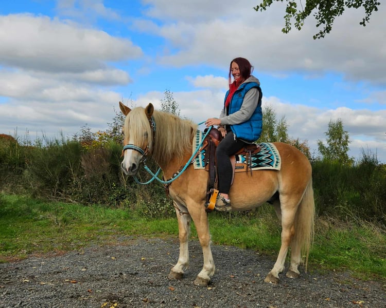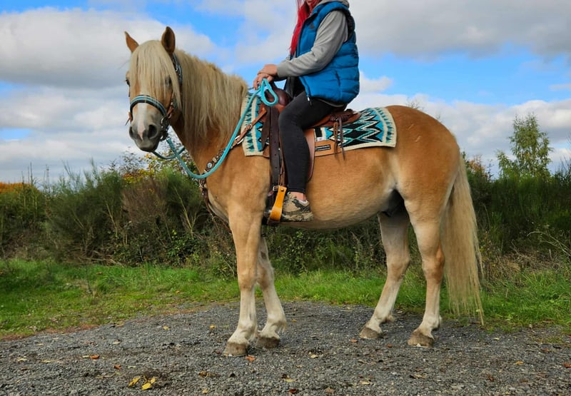 Haflingerwallach BAILEYS wird 4J. 2026 , volle Papiere , E-Paß , stm. 1,50 super netter Bub kennt Kinder und Hunde . Wird gerade angelernt , sucht ein neues Heim wo er eiter gefördert wird .Preis steigt bei weiterer Ausbildung .... jetzt kostet er 5900,- Ein super schöner Wallach die sich ideal für das Gelände- und Wanderreiten eignet. Sie ist ein vielseitiges Freizeitpferd, das sowohl für englisches als auch für western Reiten bestens geeignet ist .Er hat ein tolles, ausgeglichenes Wesen und fühlt sich in der Herde wohl, ist aber auch in der Box gut aufgehoben. ### *Das zeichnet sie aus:* - Offenstall- und Herdenhaltung gewohnt, Boxenhaltung ist ebenfalls kein Problem - Ideal für Freizeit- und Geländereiter - Sehr ausgeglichen und unkompliziert im Umgang *Interesse?* Rufen Sie uns gerne an unter *0171-4001968* (täglich von 8–20 Uhr). *Bitte keine Mails oder WhatsApp, nur Anrufe!* *Zusätzliche Informationen:* - Zubehör und Transport können günstig organisiert werden. - Unser Hofladen bietet eine kleine Auswahl an gebrauchten Westernsätteln. - *Ratenzahlung ist nicht möglich.* *Service für Kunden:* - Jeder Kunde erhält ein vertraglich festgesetztes *Umtauschrecht von drei Monaten.* - Ein Proberitt bei uns ist möglich, damit Sie Ihr Traumpferd kennenlernen können. Für 35 Euro können Sie reiten, sich ihn vorreiten lassen, spazieren gehen oder mehr. Auf Wunsch können Sie auch ein zweites Pferd testen für 25,- . Dieser Betrag wird beim Kauf eines Pferdes am gleichen Tag selbstverständlich verrechnet. *Besonderheiten:* - Bei sofortiger Abholung mit Pferdeanhänger erhalten Sie *einen Nachlass von 100 Euro.* - Wir absolvieren den Verkauf mit einem transparenten Proberitt, um sicherzustellen, dass es das richtige Pferd für Sie ist.