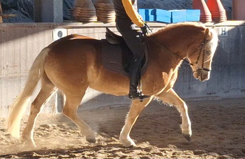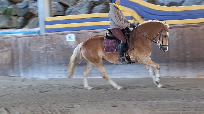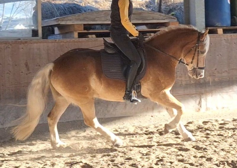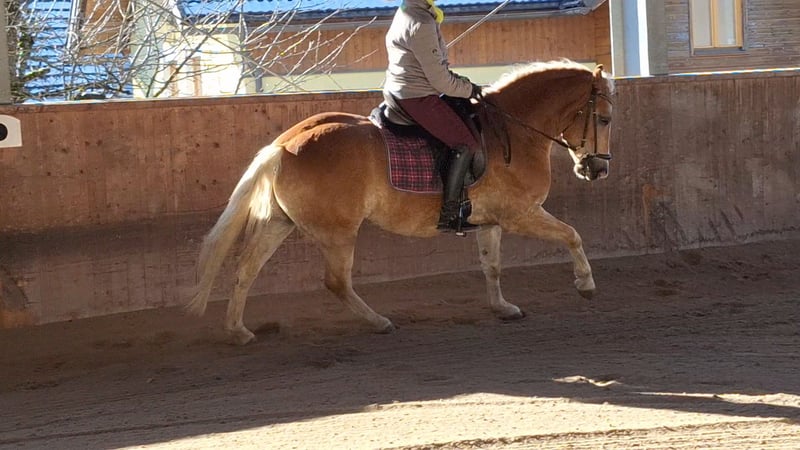 4 jähriger Haflingerwallach, super lieb, im Umgang ein echter Schatz, rittig und will immer gefallen. Zur Zeit 150cm - wächst noch. Super Einstellung bei der Arbeit, will immer alles richtig machen. Für alle Sparten geeignet. Wurde Western angeritten dann auf Englisch umgestellt. Hat eine super geschlossene Galoppade und ist sehr sitzbequem. Macht einfach Spaß in zu reiten.