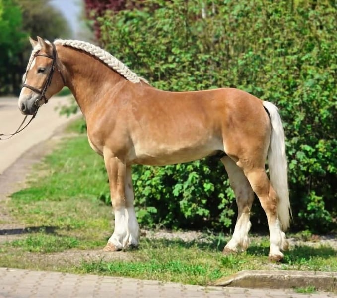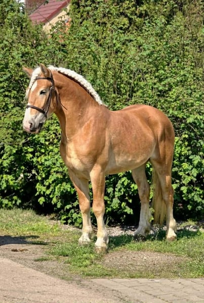 ⭐✨ Sport Haflinger ✨⭐ A real eye-catcher with his beautiful color 😍 16.1 hh (approximately 1.65 m) He is only 5 years old and a truly cool type. He is at the perfect age, has plenty of experience, and a promising future ahead. He is extremely calm, balanced, friendly, and human-oriented – willing to work both from the ground and under saddle 🐎. Traffic-safe – noise from traffic, cars, bicycles, or other disturbances do not disturb him 🚗🚲. He walks confidently and calmly, is not nervous or spooky. Under saddle, he moves well-balanced in all three basic gaits. From the ground, he is very easy to handle: attentive, patient, politely gives hooves 🐾, stands quietly for hoof cleaning, and is easy to lead by halter or bridle. He is easy to groom and reacts calmly to his environment 🧴. He adapts quickly to new situations and feels comfortable in a herd – he is neither dominant nor quarrelsome 🐴🐴. This gelding is a true family partner – perfect as a leisure horse, for children, or even for light carriage driving. He is intelligent, eager to learn, and always brings calmness into everyday life. He is regularly cared for, healthy, and all necessary papers are in order 📄✅. I wholeheartedly recommend him to anyone looking not just for a horse, but for a loyal, lovable companion 🐴🤍. • Hooves trim well. • Saddling and unsaddling without issues. • Easy to load. • Well-groomed and with a pleasant temperament. • No stable faults. • Recently dewormed. • Suitable for beginners. Also suitable for children's training. He is not only spectacular but also easy to handle in everyday life. Ideal for riders looking for a reliable and beautiful horse to grow with. Transport possible! +49 176 4017 7894