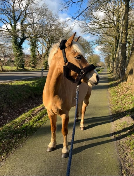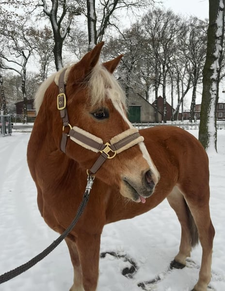 Nous recherchons pour notre adorable Haflinger gelding presque âgé de 6 ans, Snoopy, né le 26 mai 2020, un nouveau foyer aimant. Il a été mesuré à 1,44 m en décembre 2024. Comme notre fille (âgée de 15 ans) mesure 1,80 m, il devient malheureusement trop petit pour elle. Snoopy a déjà été doucement monté en selle, c’est un Haflinger sportif avec trois allures de base très bonnes. Lorsqu’on le mène à la longe, qu’on le brosse ou qu’on le longe, il est très proche des humains, attentif et courageux. En selle, en indoor, en outdoor, seul ou en groupe, nous le trouvons très confiant et bien dressé. Il a de l’expérience en compétition, allant de la reprise de dressage jusqu’à la E-Dressage, où il a déjà été placé. Récemment, il a également commencé l’entraînement au saut d’obstacles et a déjà participé à des concours, où il a été également placé. Snoopy montre beaucoup de plaisir lorsqu’il saute. Il pardonne aussi les erreurs de son cavalier et aide à ajuster les distances inappropriées. Il connaît le box et le paddock, et il s’entend très bien avec d’autres chevaux et poneys (il est plutôt de rang inférieur). Il est calme lors du pansage et se laisse facilement charger dans le van. En raison de son jeune âge, Snoopy n’est pas un poney débutant à lui seul, mais avec la bonne guidance, c’est un véritable poney de rêve, idéal pour un enfant ambitieux souhaitant débuter en compétition. Ce n’est pas une vente d’urgence, nous prenons notre temps pour qu’il trouve une famille aimante.