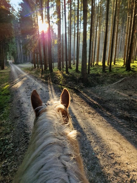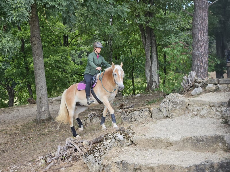 Amico ist seit September 2024 in unserer Pferdeschule. Er hat Freude im Gelände, geht alleine, als auch in der Gruppe sicher. Dabei kann er an jeder Position geritten werden: an der Tete, in der Abteilung, Schlussreiter). Amico hat bereits an etlichen Veranstaltungen und Festritten teilgenommen. Dabei zeigt er sich nervenstark und verlässlich. Zum Beispiel war er bei Martini Ritten und Leonhardi Ritten dabei. Auch den großen historischen Festzug kennt er. Dort sogar mit Standarte. Im letzten Jahr habe ich ihn erstmal auf den German Open EXTRME TRAIL vorgestellt. Amico ist Easy Hand und Easy Trail geritten. Er ist sehr neugierig und aufgeschlossen. Er braucht viel Beschäftigung und vor allem Abwechslung. An diesem Punkt werden wir ihm im Betrieb nicht ganz gerecht. Auch die Arbeit am Platz unter dem Sattel macht ihm mit seinen knapp 6 Jahren nicht wirklich Freude. Viel lieber geht er ins Gelände. Daher suchen wir für Amico einen neuen Besitzer, der mehr Zeit für ihn hat, am liebsten ausreiten geht und vielleicht auch das Training im Trail mit ihm fortsetzten möchte. Bei einem ernsthaften Interesse rufen Sie mich bitte an. Amico hat bisher wirklich noch nie schlechte Erfahrungen machen müssen und ist unglaublich vertrauensvoll.