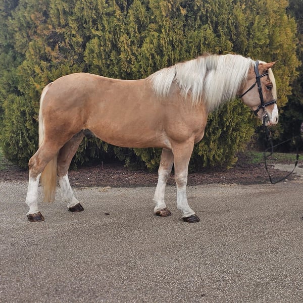 🐴 Name: Alfi 🎂 Alter: 6 Jahre 📏 Stockmaß: 155 cm 🌈 Farbe: Palomino, Haflinger Mix 💖 Kategorie: Kinderpony / Für Anfänger geeignet Alfi ist eine traumhafte, brave und zuverlässiger Pony-Wallach, der sich perfekt für Kinder und Anfänger eignet! 🤗🧒👧 (8 jähriges Kind auf dem videos) Er zeigt sich äußerst kooperativ, lieb im Umgang und leicht zu reiten. 💞 Im Dressurtraining arbeitet sie fleißig und konzentriert, und beim Springen zeigt er immer sein Bestes – mit Reiter springt er schön und sicher! 🏇✨ 🌟 Ihre Highlights: • super Charakter 🥰 • verlässliche Partnerin für Kinder 👧🧒 • ideal für Anfänger 💪 • talentiert im Springen 🏅 • nervenstark und ausgeglichen 🌿 Alfi ist bereit, ihrer neuen Familie viel Freude zu bereiten! 💖🏡 Top preis!! +4917640177894