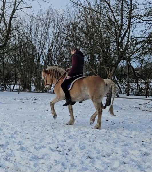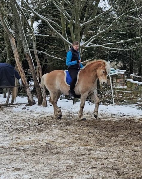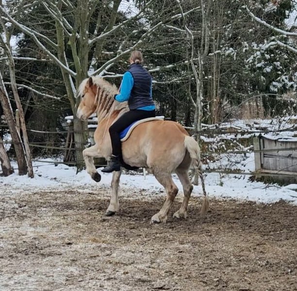 Umständehalber verkaufe ich meinen 7 Jährigen Haflinger Wallach, 145cm groß. Er ist ein sehr schlaues Pferd, lernt unglaublich schnell und möchte immer gefallen. Er wird schonend in der Akademischen Reitkunst ausgebildet und beherrscht schon viele Lektionen. Er liebt es sich in Versammlung zu präsentieren (Piaffe, Passage, Schulschritt) Er kennt alle Seitengänge in Schritt und Trab. Seine Lieblingsübung ist neben der Schulparade die Levade oder die Pesade. Sternchen hat super Hufe und ein ganz korrektes Exterieur. Er geht gerne ins Gelände, obwohl alleine noch wenig geübt worden ist. Er kennt die Arbeit am Boden, Handarbeit, Liberty reiten, Fortgeschrittenes Longieren. Ansonsten ist er ziemlich furchtlos und erschreckt sich sehr selten. Trotzdem nicht an reine Anfänger, weil er dafür einfach zu clever ist. Er trägt im Sommer eine Fliegendecke, damit kommt er super zurecht.