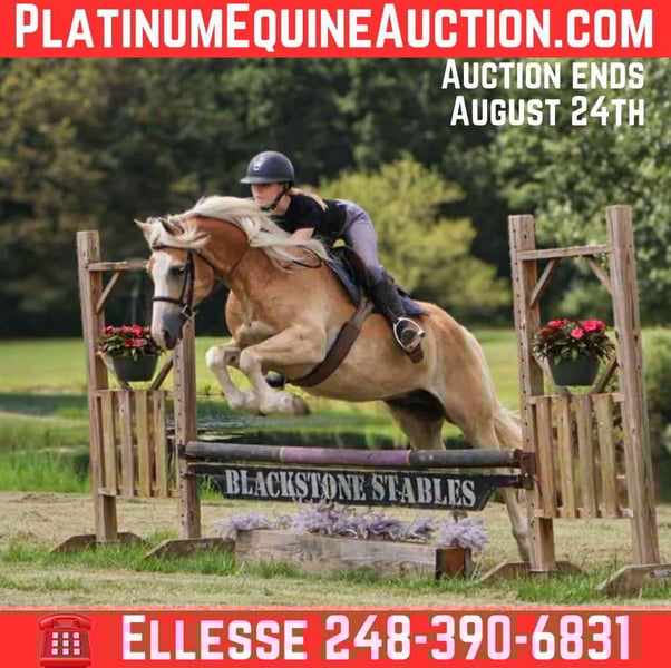 ONLINE AUCTION Place your bids at www.PlatinumEquineAuction.com Starting Bid $3500 Auction ends August 24th, 2025 Need a new saddle? Check out White Rock Saddles on our website or Facebook “APPLE OF HIS EYES S-SN” or Apple as we call him for short! Apple is a 14.1hh Haflinger gelding. He is registered with the AHR, Registration Number: 34380-19. He is a 7 year old. Apple is absolutely as pretty as a picture out of a book with his beautiful light chestnut coat and his flowing blonde mane and tail. He has very correct conformation with his sturdy bone structure and solid feet. Apple has a big, kind and expressive eye. He is also bred to a T out of all imported lines. Apple is broke to ride and drive! He has been trained by the best in the business. He has great ground manners and stands for grooming, tacking, mounting, and dismounting. Apple can walk trot and canter with ease. He is fluid and elegant in all of his gaits. Under saddle he’s a joy to ride, with his effortless transitions and go with the flow attitude. Out on the trails he’s as brave as they come and he loves the water! He’s seen the deep woods, open fields, bikes, wildlife, and traffic! He is also extremely broke to drive. He’s been driven single, double and in a 4 horse hitch! Apple is a handy size, with incredible breeding, a sensible mind and the versatility to do any job asked of him. He is an all around user friendly kind of guy! Please call Ellesse Schwartz 248-390-6831 for more information. ONLINE AUCTION Place your bids at www.PlatinumEquineAuction.com Starting Bid $3500 Auction ends August 24th, 2025 Need a new saddle? Check out White Rock Saddles on our website or Facebook