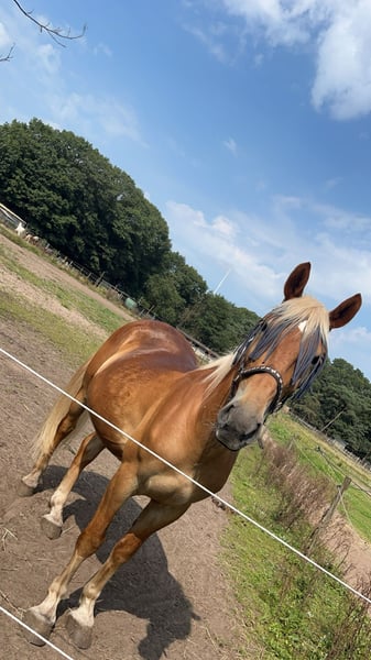 Balou is een 7-jarige ruin van 1.60m, afkomstig uit Hongarije en sinds begin 2023 in Nederland. Over Balou: Balou is een echte werker en laat zien dat hij graag wilt. Hij heeft nog weinig ervaring en heeft dus nog wat begeleiding nodig. Hij gaat goed op veel afwisseling. Elke dag rijden in de bak is hij na een tijdje beu. Af en toe een sprongetje maken vindt hij ook leuk. Hij is nog nooit naar buiten geweest en dus ook niet verkeersmak. Onze buitenbak en longeercirkel staat aan de weg. Maar wanneer er auto’s, fietsers of groot verkeer langskomen kijkt hij er nauwelijks van op. Begin oktober 2025 zijn we met hem voor het eerst aan de hand naar het strandje geweest (500m lopen van stal). We zijn maar 15 min weggeweest maar was voor hem lang genoeg. Hij vond het erg spannend maar het ging wel heel erg goed. Omdat we alleen tussen oktober en april op het strand mogen met honden en paarden was het ook heel druk met loslopende honden. Hierdoor bouwde hij wel veel spanning op. Hij luistert naar zijn naam en komt naar je toe lopen als je hem roept. Ook met longeren gaat hij goed op je stem en reageert op de commando’s. Karakter: Balou is een echte persoonlijkheid. Een knuffelkont die graag contact zoekt en zich soms letterlijk tegen je aan komt hangen. Balou is niet geschikt voor kinderen of beginnende ruiters, vanwege zijn soms onvoorspelbare gedrag en forse kracht. Aan de hand kan hij uitdagend zijn. Soms loopt hij keurig met je mee, maar op andere momenten trekt hij of gaat hij rennen. Een hengstenketting is daarom echt noodzakelijk. Dit gaat de laatste tijd wel steeds beter en begint hij steeds meer lief achter je aan te lopen. Ook heeft Balou een uniek en grappig trekje: hij vindt het ontzettend leuk als je met zijn tong speelt. Hij kan daar echt van genieten en het werkt vaak ontspannend voor hem. Het zegt veel over zijn nieuwsgierige, soms wat ondeugende karakter. Wat zoekt Balou? Balou heeft een ervaren, consequente ruiter of begeleider nodig die stevig in zijn/haar schoenen staat. Iemand die hem verder wil opleiden, duidelijke grenzen kan stellen en voldoende tijd heeft om met hem te werken. Met de juiste persoon en aanpak kan Balou echt een fijn, werkwillig paard worden. Hij wordt aangeboden voor recreatief gebruik – dus voor iemand die graag ontspannen met zijn paard wil werken, buitenritten wil maken, eventueel aan de slag wil gaan met grondwerk of mennen, maar geen sportambities heeft. maar op zoek is naar een bijzondere pony om rustig en bewust mee aan de slag te gaan. Waarom verkoop ik hem? Met pijn in mijn hart heb ik helaas de beslissing moeten nemen om Balou te verkopen omdat ik merk dat de klik tussen ons weg is. Balou verdient iemand met wie hij die klik wel gaat krijgen, iemand die met frisse energie en liefde met hem verder wil. Iemand die daar de tijd voor heeft en die hem de begeleiding kan geven die hij nodig heeft. Met rijden kent hij de basis maar moet nog goed doorgereden worden om het echt onder de knie te krijgen. Ook denken we dat hij vroeger voor de kar heeft gestaan. Ik denk dat als je dit opnieuw zou oppakken/aanleren dat je er een leuk menpaard van kan maken. Ik zoek een goed huisje voor hem met iemand waar hij verder getraind kan worden. Iemand die daar de tijd, ervaring en geduld voor heeft. Als hij het eenmaal onder de knie heeft dan is het echt een top paard en kan je alles met hem. Extra informatie. - in november 2023 is Balou klinisch en röntgenlogisch goed gekeurd op benen en hoeven. Rapport en foto's zijn aanwezig. Opnieuw keuren is voor eigen kosten. - Balou heeft elk jaar zijn verplichte entingen gehad. - Begin 2024 zijn zijn wolfskiezen getrokken. Oktober 2025 heeft hij weer een gebitbehandeling gehad. Dierenarts gaf aan dat er bij hem weinig hoefde te gebeuren en dat hij prima om de 1,5/2 jaar gedaan hoeft te worden. - elke 8 weken wordt hij bekapt. Hij staat niet op ijzers. - filmpjes van longeren of rijden beschikbaar. - bij de koop van Balou kan je ook spullen overnemen. Waaronder zadel en hoofdstel. We kunnen samen even kijken wat je wilt hebben. - geen stalgebreken. - super lief met andere paarden in de wei.
