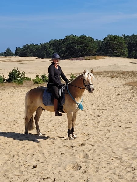 Talentvolle, mooie 9-jarige Z2 geklasseerde Haflinger ruin aangeboden voor de ambitieuze ruiter. Bergstein, maar wij noemen hem Bootz, is een talentvolle Haflinger met een interessant papier voor Haflinger-liefhebbers die graag naar het EK in Stadl Paura willen omdat Bootz 0% vreemd bloed heeft. Zijn vader is Bergquell en moeders vader is Whetu die weer afstamt van de welbekende Allacher. Predikaatrijke moederlijn, veel elite, sport en preferent. Bootz springt een correcte wissel en ook al zijn zijgangen zijn correct en bevestigd. Bootz is een werkwillig paard met voor een Haflinger veel go! Bootz is altijd zorgvuldig ingeënt en ook heeft hij preventieve fysiotherapie en tandartsbehandelingen gehad. Bootz loopt makkelijk op de trailer maar ervaart tijdens het rijden wel wat spanning. Bootz is niet geschikt voor de jonge of beginnende ruiter want hij zoekt iemand die doortastend is vanwege zijn Haflingerhumor. Bootz is verkeersmak en gewend mee te gaan naar het bos, Bootz is echter niet bomproof. Bootz is sinds zijn 3e in mijn bezit en daarvoor heeft hij in de opfok gestaan in Groningen bij een Haflingerstal. Ik heb Bootz zelf zadelmak gemaakt en opgeleid naar het niveau waarop hij nu presteert. Je kan Bootz gerust een week stilzetten en weer opstappen maar het is wel een paard wat aan het werk moet worden gezet. Wil je het nieuwe jaar met deze opvallende verschijning gaan shinen in de ring neem dan contact op via telefoonnummer: 06-24089279. Keuringen toegestaan k.k. Voorkeur voor snelle afhandeling, scherpe 🥕