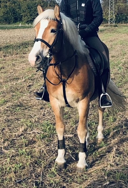 Schweren Herzens verkaufen wir unseren geliebten Haflingerwallach aufgrund des Umstiegs auf ein Großpferd. Er ist ein sehr liebes und braves Pferd im täglichen Umgang und stets freundlich im Handling. Natürlich hat auch er - wie jedes Pferd - seine kleinen Eigenheiten, insgesamt ist er jedoch unkompliziert und zuverlässig. Unter dem Sattel zeigt er sich lernwillig. Er ist bereits mehrere Turniere gegangen und konnte in der Dressur Noten über 7,0 bis hin zum Lizenzniveau erreichen. Auch im Springen wurde er vorgestellt (bis ca. 90 cm). Wir wünschen uns für ihn ein nettes, pferdeerfahrenes Mädchen oder eine liebevolle Reiterin, die gerne weiter mit ihm lernen, Spaß haben und eventuell auch Turniere starten möchte. Er wird ausschließlich in einen absoluten Bestplatz abgegeben. Keine Händler/ Schulbetrieb/Therapie!!