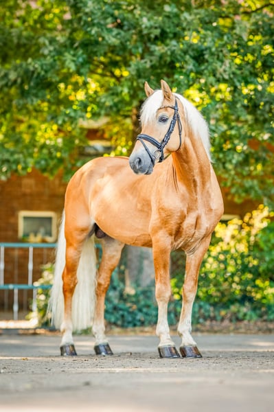 Purebred Stallion Bergkristall-Q Born on February 26, 2010, in Kastelruth, Italy, and licensed in Vechta-Weser-Ems in 2013. In 2014, he completed his stallion performance test in Warendorf with a score of 7.65, with particular praise for his exceptional willingness to work, earning a 9.5. In 2016, he was awarded a premium status Class I. He is approved for Westphalia. His sire is the well-known Barolo, and his dam is Gundi by Anton Südtirol, out of the Athina line by Nissan-T. He has been used for natural cover at our stable and has been driven single and ridden for leisure. He is very straightforward and well-behaved both under saddle and in harness, making him suitable for reintegration riders. Currently, he is shod with four shoes but also moves perfectly barefoot.