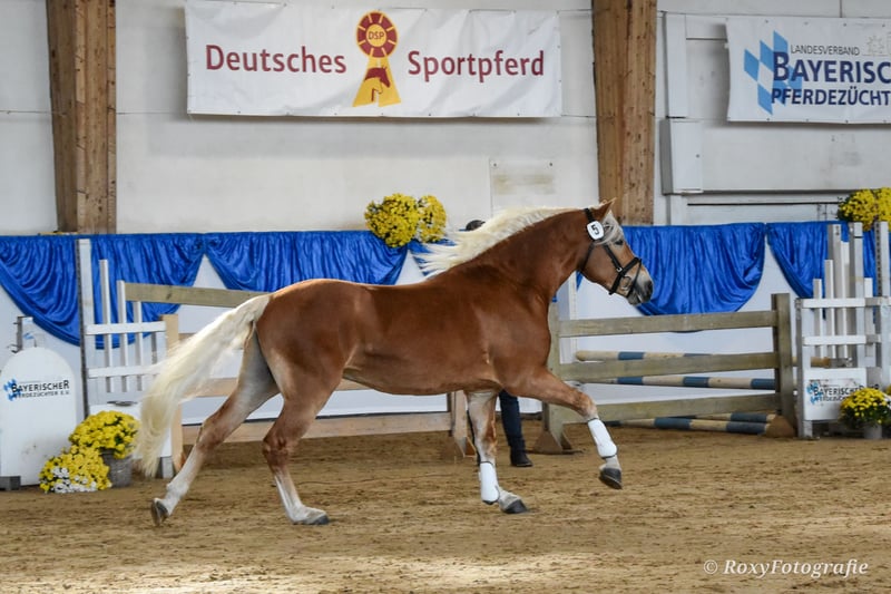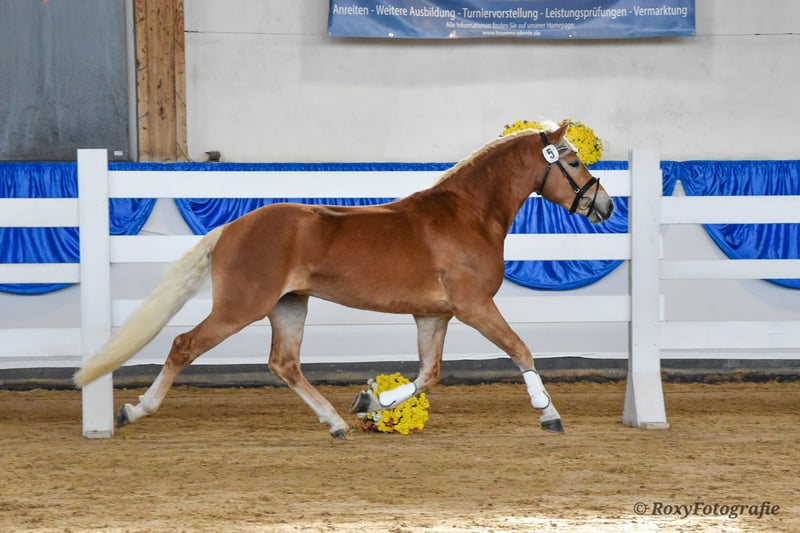 Verkaufe charmanten Haflinger Junghengst / Wallach Geboren in 04/2023 wird er im Frühjahr nun 3 jährig und ist bereit die Welt zu entdecken. Er stammt ab vom Bundesprämienhengst, Körungssieger und HLP-Sieger Bugatti, der aktuell Landbeschäler im Landgestüt Moritzburg ist und 2023 Bronze zum Bundesfahrponychampionat holen konnte. Seine Mutter ist eine Verbandsprämienstute vom 3-fachen Weltsiegerhengst Liz. Abendstern x Winterstein. Balios vereint damit beste tiroler Genetik der Mutter über Bugatti mit dem Vererber Bellisimo sowie dem herausragenden Mutterstamm des Bugatti. Als Fohlen siegte er zu seiner Fohlenschau, wurde 5.ter zum Championat in Moritzburg und Reservesieger der Hengstfohlen zum Haflingertag in Brandenburg-Anhalt. Er ist bereits sehr gut entwickelt und misst aktuell bereits mind. 1,51 m (eher mehr) und wächst natürlich noch. Er ist selbstverständlich artgerecht in einer altersgemischten Junghengstherde aufgewachsen. Balios kennt die Führmaschine, das Longieren, Freilaufen in der Halle sowie Freispringen. Er wurde zur Körung vorgestellt und ist daher aktuell vorn beschlagen. Hufschmied und Verladen sowie die normalen Umgangsformen kennt er daher selbstverständlich. Balios ist ein wirklich modern aufgemacht Haflingerhengst im sportlichen Typ. Er sucht ein Zuhause in dem er weiter ausgebildet, gefordert und gefördert wird. Eher kein Pferd um nur 2x die Woche zu arbeiten, er braucht eine Aufgabe. Er lernt sehr schnell und gibt sich immer große Mühe. Ich sehe ihn eher bei einem Freizeitreiter/ -fahrer mit Turnierambitionen. Balios ist ein Pferd mit einer unglaublichen Ausstrahlung und ein wahrer Hingucker, er besitzt 3 gute Grundgangarten und ist jetzt angearbeitet und bereit seine Karriere als Reit- und/oder Fahrpferd zu starten. Wer einen zuverlässigen Partner für vorrangig den sportlichen Bereich sucht, wird bei ihm nicht enttäuscht werden. Er wird zeitnah kastriert und dann startet seine Ausbildung hier so langsam. Mit steigendem Ausbildungsstand steigt auch der Preis. Momentan noch ein absoluter Rohdiamant zum selbst schleifen/ ausbilden. Transport ggf. möglich.