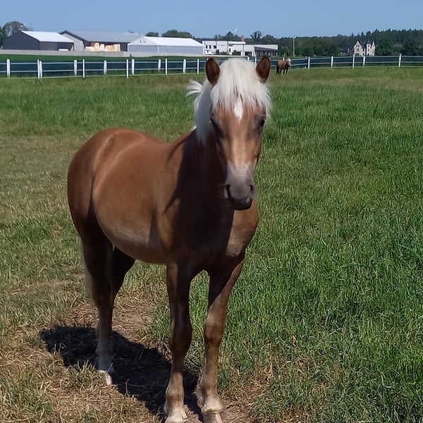 Elevage de Haflingers. Poulain bai brun né le 10/04/2022. Papiers complets, Haflinger pur-sang, inscrit au registre général. Calme et facile à manipuler. Bary a passé avec succès sa première épreuve de trait, il est très calme, posé, et s’est comporté de manière exemplaire pour un premier essai. Intelligent, réfléchi, et tranquille, il peut faire tout ce qu’on lui demande. Il ne mord pas, ne donne pas de coups de pied, et est très affectueux. Possibilité d’envoyer une vidéo de son entraînement. Sur la photo de gauche, en compagnie. Père : Arafat, mère : Bella, de ma propre élevage. Il possède une licence de reproduction, une taille de 147 cm, et a obtenu 82 points à la bonitation. Transport possible dans toute l’Europe. WhatsApp. Échange possible contre une jument jeune ou un poulain.