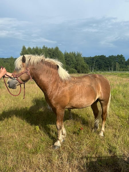Haflinger 5 lat 149 cm licencja Na sprzedaz 5 letni haflinger o wzroscie 149 cm z licencja i pelnym pochodzeniem. Kon zdrowy spokojny chetny do pracy bez nalogow. Nadaje sie do rekreacji sportu amatorskiego oraz hodowli. Lokalizacja Zarki Wielkie woj lubuskie Cena 18000 zl Telefon 50*****48