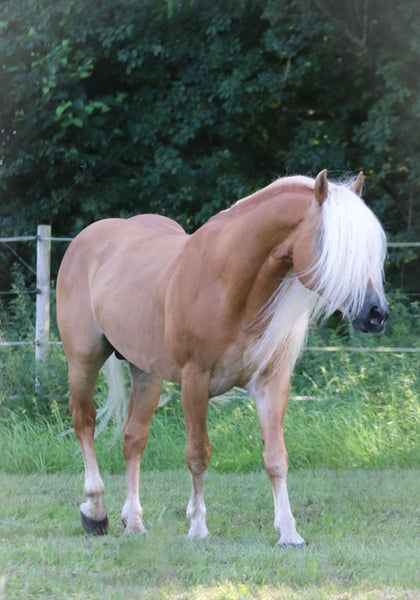 Born 2018 • Height approx. 1.50 m • PSSM N/N • 0.00% foreign blood • licensed & performance tested . Some stallions impress at first sight – others leave a lasting impression. Stakarino undoubtedly belongs to the latter category. . The 2018-born purebred stallion combines everything that makes a breeding and sportingly highly interesting Haflinger: excellent pedigree, proven offspring, extraordinary presence, and an interior that sets standards. . ⸻ . HLP Munich-Riem 2022 – Quality in black and white . Stakarino completed his 30-day stallion performance test in Munich-Riem (breeding direction Riding/Driving) with a weighted final score of 8.16, securing 2nd place. . His test results underline his versatility and exceptional status: • Interior 8.61 – character, sociability, and willingness to perform at the highest level • Riding 8.17 – consistently safe and harmonious performance under saddle • Driving 7.75 – convincing suitability . Individual highlights: • ⭐ Sociability & behavior: 9.5 • ⭐ Learning & willingness to perform: 9.0 • ⭐ Rideability: 8.5 (also confirmed by an outside rider) • ⭐ Driving suitability (ES) & willingness: 8.0 • ⭐ Jumping ability (free jumping): up to 8.5 . These results demonstrate: Stakarino is a performance-ready, versatile, and character-strong stallion that can be used in both riding and driving horse breeding with a forward-looking approach. . ⸻ . Genetics with a future – 0.00% foreign blood . As the son of the proven sire Stallion out of the dam Wiola (by Wagner-E), Stakarino carries a high-class pedigree that stands for breeding reliability. With 0.00% foreign blood content, he is a valuable building block for Haflinger pure breeding – a purity that has become rare today. His PSSM-free genetics (N/N) also make him particularly interesting for sustainable and healthy breeding programs. . ⸻ . Offspring – Quality that convinces . Despite his young age, Stakarino has already impressively proven himself in breeding: His foals present themselves typologically, correctly, and with striking movement mechanics. Particularly noteworthy is the champion stallion foal Blitz U-Nebeltanz (Foal Championship Brandenburg-Anhalt 2024), which impressively confirms his quality. Other offspring have also regularly placed in the final ring at foal shows. . ⸻ . ✨ Character & Appearance . Stakarino captivates with his elegant appearance, his abundant feathering, and a height of approx. 1.50 m. He is an absolute gentleman in daily handling: friendly, balanced, and self-assured – a stallion that combines professionalism in breeding with kindness in everyday life. He is familiar with both natural covering and artificial insemination, making him flexible for studs with different orientations. . ⸻ . A stallion for the highest demands • For breeders seeking pure breeding quality with proven performance capability • For studs wanting to establish a genetically highly interesting, PSSM-free stallion with tested breeding power • For sport & breeding alike – Stakarino is versatile and forward-looking . ⸻ . Exclusively on offer . Stakarino is offered solely due to a realignment of his owner’s breeding program – under normal circumstances, a stallion of this quality would never be on the market. . He is now available for serious inquiries. . For further information, feel free to send a message! . The price is negotiable but remains in line with the quality and will not be sold below value. However, the owner is open to realistic offers.