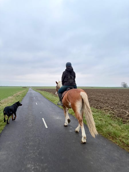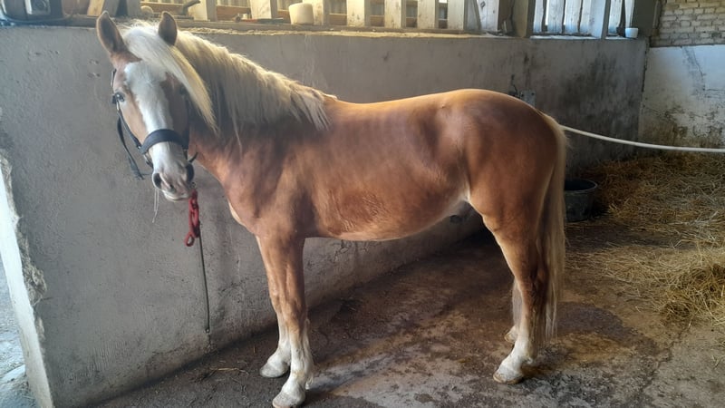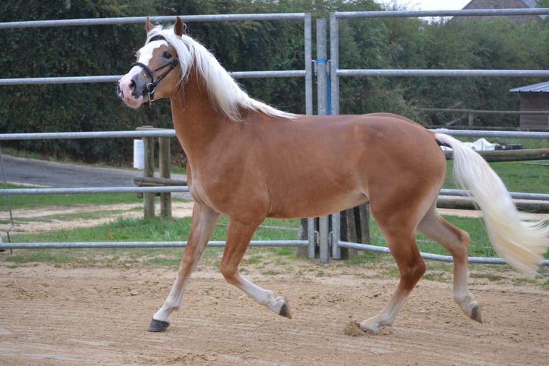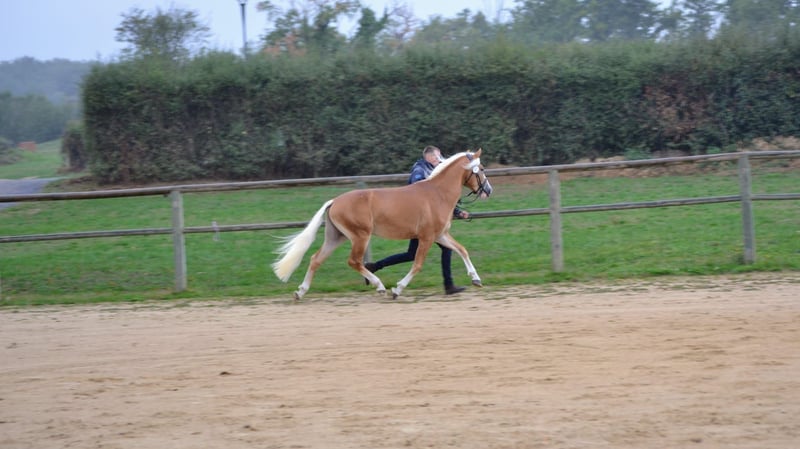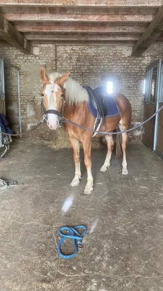 🐴 NO'MAD STERN🐴 Fils de Liz STERNWACHTER et Ghala Cara (UILHOU WINZ), né le 4 mai 2023. Toise un peu plus de 150cm. Origines de qualité aussi bien paternelles que maternelles. Approuvé à titre définitif pour reproduire dans la race Haflinger. Il est confirmé dans la race avec 36,68 points au modèle et allures ! 15,33 points sous la selle et 51 points au Loisir. Il a été jugé de "poulain moderne avec une belle robe, bien relié dans sa ligne du dessus, de bons membres surtout ses antérieurs. Pêche dans sa tête et le dessous de son encolure. Ses déplacements sont bons" C'est un cheval gentil, bien dans sa tête et calme. Il est facile à gérer au quotidien, vit en pâture en troupeau mais également en box ou stabulation. Il est à jour de ses vaccins (Grippe et Rhino), analyses métrite, artérite et anémie résultats négatifs. PSSM1 résultats négatifs également. No'mad est débourré aux trois allures depuis cet hiver mais reste un peu "vert" dans le travail dû à son jeune âge mais sérieux dans le travail. Il peut être proposé pour reproduction ou pour travail/loisir. Castration possible avant départ si besoin.