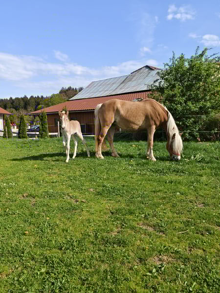 Assi is a very friendly, trusting, and charming broodmare. Over the past three years, she has produced three impressive foals with us—two fillies and one colt. She has been lightly ridden in her leisure time at ages three and four. During her time with us, she has served as a broodmare and as a gentle helper for children. Since autumn, she has been back under saddle work. Thanks to her excellent pedigree, she is certainly of interest for further breeding. However, she would also make a wonderful partner for leisure riding.