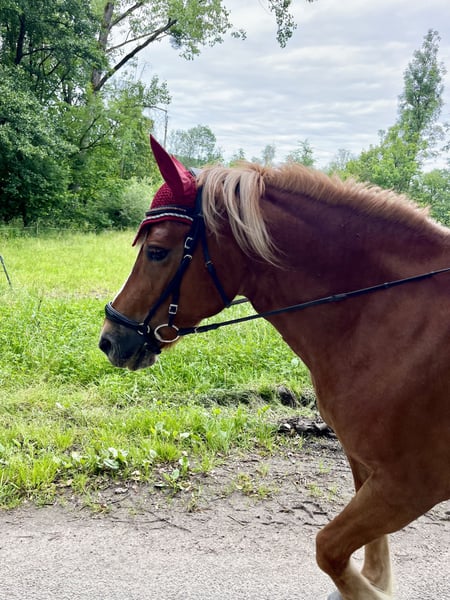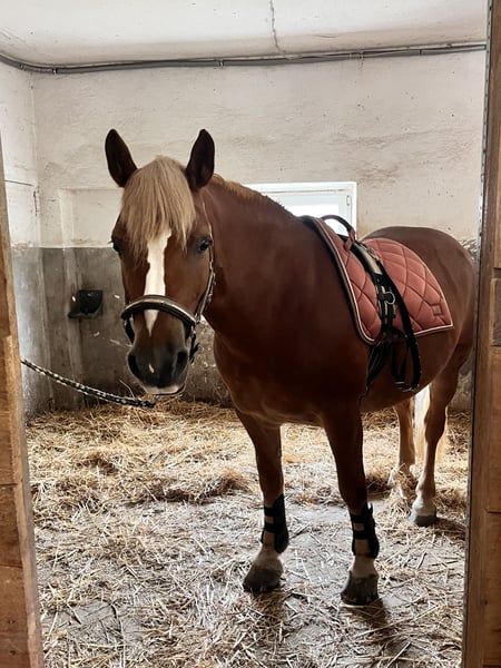 Hello, With a heavy heart, I have decided to sell my Fleur due to lack of time. She is 10 years old and stands 147 cm tall. She has no vices, is familiar with trailers and the blacksmith. She is shod in front. Fleur is used to both stable and pasture life, but her curious nature makes her prefer the pasture. Thanks to her calm and friendly demeanor, she is well-suited for children and beginners. Fleur has also been regularly ridden by children and teenagers at our stable. She is also well-behaved in the outdoor riding area. Primarily, she is ridden for leisure and dressage, but she also jumps a few small obstacles. She is frequently worked from the ground (groundwork, lunging, double lunging, some hand work). Fleur is being sold with all accessories included (bridle, fitted saddle, saddle pads, blankets, grooming tools, etc.). 6 🥕🥕🥕 including accessories I am looking for someone who can enjoy Fleur as a leisure horse and family member. 💕