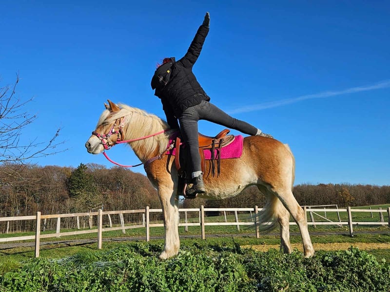 Haflinger-Stute brav, gelassen & ein echtes Freizeitpony Eckdaten: • Name: Diva • Rasse: Haflinger • Geschlecht: Stute • Alter: 12 Jahre • Stockmaß: ca. 1,50 • Ausbildungsstand: Freizeitpony, geritten im Gelände • Preis: 5900,- Zum Verkauf steht unser hübscher Haflinger-Stute DIVA “ ein ehrlicher, zuverlässiger und liebevoller Partner, der mit seinem charmanten Wesen und seiner coolen Art begeistert. DIVA ist: – absolut brav und unkompliziert im täglichen Umgang – ruhig, freundlich und immer gut gelaunt – geht sowohl alleine als auch in der Gruppe entspannt ins Gelände – kennt Kinder, Hunde und Landmaschinen – steht brav beim Putzen, Satteln und Schmied – ein echt tolles Pony, das Freude an der Arbeit und am Miteinander hat Mit seinem ausgeglichenen Charakter und seiner Gelassenheit ist Toni das perfekte Freizeitpony für Reiter, die ein zuverlässiges, nervenstarkes und unkompliziertes Pferd suchen – ideal für Ausritte, Freizeit oder Bodenarbeit. Perfekt für: Freizeitreiter, Familien oder Wiedereinsteiger, die ein sicheres, treues und freundliches Pony suchen, mit dem man einfach Spaß haben kann. Unsere Pferde: – regelmäßig entwurmt – vom Schmied & Osteopathen betreut - AKU-MICROCHIP -E-PAß ist immer dabei . Hofladen: Zubehör, Sättel & Trensen erhältlich Transport auf Wunsch günstig organisiert ✅ Unser Service: – 3 Monate Umtauschrecht – Proberitt: 35 €, jedes weitere Pferd 25 € (beim Kauf am selben Tag angerechnet) – 100 € Sofort-Rabatt bei Abholung/Transport am selben Tag – Persönliche & ehrliche Beratung Anfragen bitte nur telefonisch: 0171 – 4001968 Täglich erreichbar: 8–20 Uhr ⚠️ Keine E-Mail oder WhatsApp ⚠️ Alle Angaben ohne Gewähr