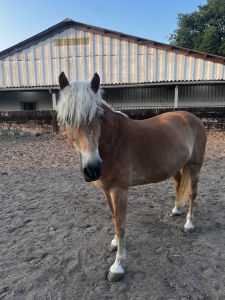 I am selling my Haflinger mare, Mika. She is 11 years old and 15.5 hands tall. Currently, we just don’t quite click anymore, and she doesn’t deserve that. She is a typical Haflinger—sometimes a bit stubborn, somewhat dominant, and she would do anything for a treat. Sometimes she needs a firm hand, so she is not suitable for beginners or children’s ponies. She is gentle when groomed and led by children, but an adult should always be present. At the moment, we are back to training after being in quarantine for a longer period due to strangles. In the arena, she performs quite well, but she still needs to improve her balance and strength. Her element is definitely trail riding, so I could see her mainly as an all-rounder for hacking or pleasure rides, with the ability to work on the arena or jump a few small fences. She is familiar with lunging, groundwork, and knows some tricks. She has lots of go, a strong willingness to please, and enjoys being worked with. A few days of rest are okay, but if she is left idle for long periods frequently, she can become under-stimulated and a bit temperamental. In handling, she can sometimes be a bit particular and needs someone who understands her and can set clear boundaries. Currently, she is in a paddock with a riding stable, but I have the feeling she gets stressed because she has to share her feed constantly. Therefore, I am looking for a home where she can have a box with all-day turnout in a herd. She has a mild summer eczema, which we manage well with sprays, grooming, and sometimes a fly sheet. I will include the saddle and some other equipment, such as blankets. A recent veterinary examination with X-rays of her legs is available from April 2025.