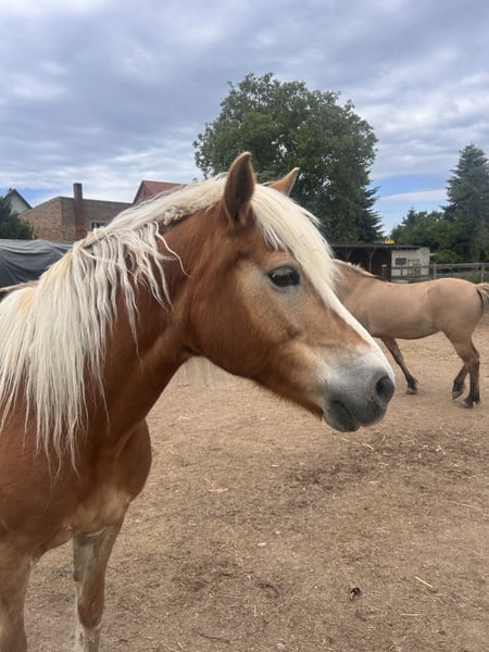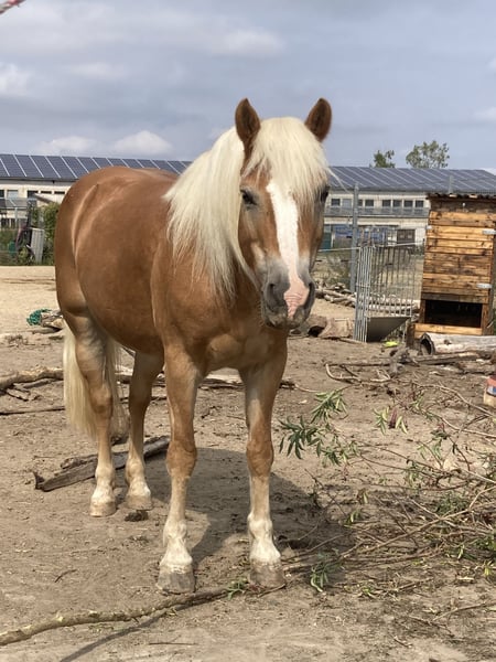 Nach langem überlegen ziehe ich nun den Schritt in Erwägung, meine Original Haflinger Stute zu verkaufen. Sie ist ein ehemaliges Rehepferd und muss dementsprechend gehalten werden. Die Änderung und Weiterentwicklung reiterlicher Ziele meiner Tochter und mir, sowie das Management mehrerer Pferde mit stark unterschiedlichen Bedürfnissen, lässt uns nun diesen letzen Schritt gehen. ⚠️ - Püppi benötigt rationierte Fütterung bei ausgewogener Mineralisierung, sie neigt schnell zum dick werden - sie trägt Duplobeschlag, diese benötigt sie aufgrund ihrer Vorgeschichte. Röntgenbilder liegen vor. Mit den Dingern läuft sie wie eine junge Göttin - sie mag Wallache lieber als Stuten. Stuten gegenüber kann sie sehr heftig werden. - Weidegang hat sie von Mitte Juni bis Ende August gut verkraftet bei mageren Wiesen und entsprechender Auslastung ❤️ - dieses Pony ist der Knaller für Kinder und unsichere Reiter, als Familienpferd wird sie kleine und große Herzen mit ihrer Souveränität und Zuverlässigkeit höher schlagen lassen - sie kümmert sich großartig um Fohlen innerhalb einer Herde - auf dem Platz gibt sie sich Mühe, aber zeigt sich hier recht talentfrei grundlegende Gymnastizierung macht sie brav mit, was muss das muss halt Ihre Stärke liegt im Geländereiten, egal ob alleine, in der Gruppe oder mit fremden Pferden Kilometer um Kilometer. Sie ist das perfekte Wanderreitpferd und dort sehe ich sie und das wünsche ich mir für sie. Egal ob Wasser, Berg oder Tal, Verkehr und so weiter - alles kein Ding. Meine Kinder lernten hier das Vertrauen in Pferde kennen und lernten auf ihr das Reiten. Daher werde ich sie nur hergeben, wenn jemand ihr Herz an sie verliert und bessere Haltungsbedingungen bieten kann, als sie bei mir vorzufinden sind. Sie macht auch im Zug inzwischen eine gute Figur. Egal ob Schleppe oder Schlitten. Ich könnte mir gut vorstellen, dass der Sprung zur Kutsche minimal ist. ✍️ Sie ist 14 Jahre Ca 145 groß Regelmäßig entwurmt, grundimmunisiert Zähne und Eisen werden jetzt im März wieder frisch gemacht