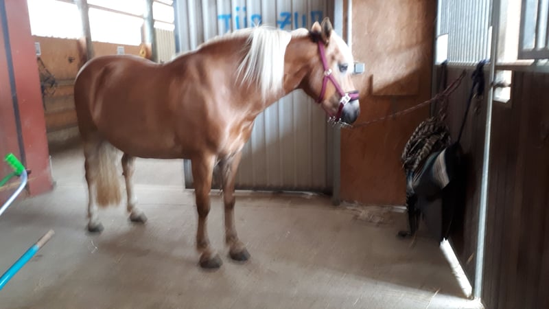 Ich hatte gehofft, mit meiner Haflingerstute Shakti (St. Alhamine) alt zu werden, aber ich kann ihr aus gesundheitlichen Gründen nicht mehr gerecht werden und muss sie deshalb verkaufen. Shakti ist ein großrahmiger (ca. 153cm) Dunkelfuchs, geboren am 20. 4. 2012 im Gestüt Hürtgenwald. Ich besitze Shakti seit 8 Jahren und habe sie mir zu einem verlässlichen Geländepferd herangezogen, mit dem ich bis zum letzten Winter täglich zwei- bis dreistündig alleine im Gelände unterwegs war. Shakti hat einen hohen Bewegungsdrang und geht fleißig vorwärts. Sie ist aufmerksam und erwartet von ihrem Reiter klare Ansagen, wenn sie etwas entdeckt hat, das sie beunruhigt. Danach meistert sie die Herausforderung souverän. Shakti kennt auch Ausritte mit anderen Pferden und geht dabei in jeder Position. Da sie neugierig und intelligent ist, arbeitet sie auch in gelegentlichen Dressur-und Springstunden gerne mit und freut sich über jede neue Anregung. Sie lernt schnell und ist stolz darauf Gelerntes vorzuführen. Shakti ist im Umgang absolut brav und kooperativ, Tierarzt und Hufbearbeitung sind kein Problem. Sie ist gerne mit Menschen zusammen und möchte gelobt werden, ist jedoch zu lebhaft, zu intelligent und zu sensibel, um ein Kinder-oder Anfängerpferd zu sein. In der Weidegruppe ist mein Pferd freundlich und niedrigrangig. Shakti ist gesund, hat aber so schlechtes Hufhorn, dass ein Beschlag absolut nicht möglich ist. Sie geht seit mehreren Jahren unsere langen Distanzen gut mit Hufschuhen, wobei eine regelmäßige fachlich korrekte Hufbearbeitung nötig ist. Im Winter steht sie in einer Einzelbox mit Paddock und hat keine Probleme mit Paddockmatten; der 24-stündige Weidegang von Mai bis Ende Oktober ist ebenfalls barfuß problemlos möglich. Shakti soll in eine artgerechte Haltung kommen, die ihr als rangniedrigem Pferd ermöglicht in Ruhe zu fressen und zu schlafen. Ich wünsche mir für mein Pferd einen Menschen mit Erfahrung in der Pferdehaltung und im Reiten im Gelände, der sich freut mit ihr aktiv Zeit zu verbringen und der ihr eine Lebensstellung bieten kann. Ein Western- und/oder Dressursattel kann gegen zusätzliche Gebühr übernommen werden. Preisvorstellung: € 5000 (VB) Es gilt Platz vor Preis.