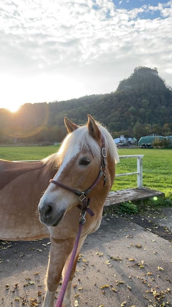 I am selling my 16-year-old Haflinger mare with an excellent character. She is an honest, affectionate, and people-oriented mare who is very well-behaved in handling – loading and farrier-friendly. As is typical for Haflingers, she can sometimes be a bit stubborn and independent. Therefore, she is looking for an experienced rider who can kindly but firmly assert themselves. In October 2023, she sustained a tendon injury on her front left leg, which was treated by a veterinarian and has healed well. Light work and hacking are no problem, but she is no longer suitable for intensive sport. She currently lives in a box with daily turnout but is also familiar with pasture life. Further information, videos, and price upon request. If you are genuinely interested, I look forward to hearing from you!