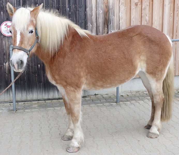 Verkaufe liebe Haflinger-Stute Zum Verkauf steht eine charmante Haflinger-Stute, geboren im Jahr 2009. Sie ist ein hübscher Fuchs mit einem Stockmaß von 148 cm und eignet sich hervorragend für die Freizeitgestaltung. Die Stute ist freundlich, und kennt den Umgang mit Menschen. Bei Interesse oder weiteren Fragen stehe ich gerne zur Verfügung. Besichtigung und Probereiten nach Vereinbarung möglich.