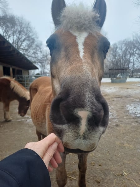 20-year-old Haflinger mare seeking a new home as a companion horse Kaya is 20 years old and has been with us since she was 5, living in an open stable in Burgenland/Seewinkel. She is overwhelmed by the size of our herd and is therefore looking for a place in a small herd or, ideally, with just one other horse. Throughout her life, she has not been very resilient due to a coffin joint ossification. However, there has been no deterioration in the last 15 years. She is walk-reliable and suitable for small rides, although she has not been ridden with us for some time. She does not urgently need to be rehomed, but I would be happy if she finds a good home.