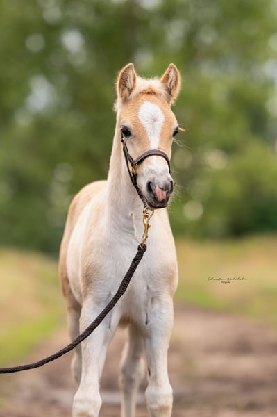 The wonderful Gertrude is incredibly people-oriented and affectionate. She is highly intelligent and knows how to present herself. She is familiar with the foal ABC and will only be sold with proof of lineage and registration. She has been dewormed multiple times and introduced to the farrier. She has a very good type and harmony. Furthermore, this mare has above-average movement! She was a championship foal! Interesting for sport and breeding. In the last pictures, you can see the father!