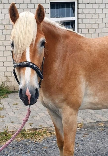 Hallo, Ich suche für meine Hübsche 3.5 jährige reinrassige Haflinger Stute ein neues dauerhaftes Zuhause. Die Stute ist ca 150cm und besitzt volle Papiere, Reinzucht mit Tiroler Abstammung . Ihr Vater ist Liz. Wotan ( Letztes Foto). Die Stute wuchs artgerecht auf. Ist regelmäßig geimpft und entwurmt. Jährliche Zahnkontrolle, Osteopathisch durch gescheckt 2024. Der Hufschmied kommt alle 8 Wochen. Die Stute kennt das Fohlen ABC und die alltäglichen Dinge ist aber ansonsten noch Roh. Sie hat 3 gute Grundgangarten und ist für alle Sparten der Reiterei offen. Auf Grund des Alters nicht für Kinder oder Anfänger geeignet. Sie ist ihren Menschen gegenüber sehr menschenbezogen. Brav im Umgang. Gut erzogen. Neuen Dingen begegnet sie mit intresse. Ich wünsche mir für die Stute ein artgerechtes, liebevolles Zuhause. Als Schulpferd sehe ich sie nicht. Gerne kann sie ihr bisheriges Zubehör mitnehmen. Bei ernsthaften Intresse bitte ich um eine etwas ausführliche Anfrage mit Informationen ihrerseits. Fragen beantworte ich gerne, ich freue mich auf Anfragen :)