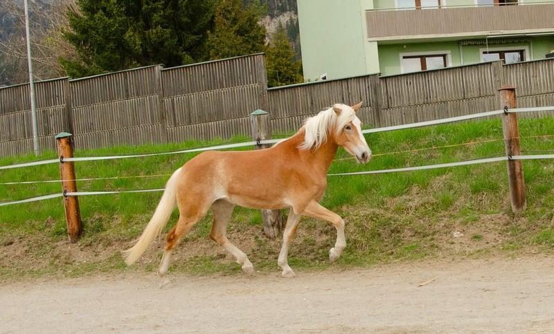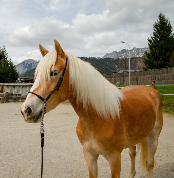 Macarena nach Shifu ist eine gut entwickelte und sehr umgängliche, dreijährige Tiroler Haflingerstute. Sie ist aus eigener Zucht und bei uns am Hof aufgewachsen. Macarena ist mit einem raumgreifenden Schritt und einer taktsicheren Trabbewegung ausgestattet. Sie kennt die Arbeit an der Longe mit Sattel und Trense und zeigt sich dabei konzentriert und lernwillig. Macarena reagiert fein auf Hilfen und ist stets motiviert. Sie wurde regelmäßig dem Hufschmied vorgestellt, entwurmt und geimpft. Beim Hängerfahren und Waschen zeigt sie sich unerschrocken und ruhig. Derzeit misst Macarena ein Stockmaß von 151 und wurde Anfang April in das Hauptstutbuch eingetragen.