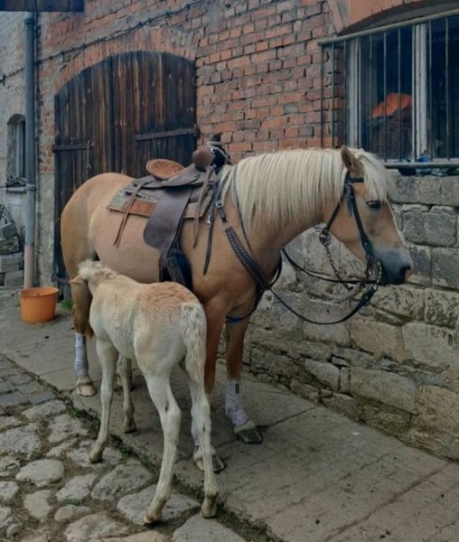 Hallo, ich möchte meine tolle 4 jährige Stute abgeben, da ich leider absolut keine Zeit mehr für sie finde... Geboren ist sie am Glückstag dem 7.7.21 Ein absoluter Allrounder, egal ob Wald, Fluss, Wiese, Feld, Reitplatz - gemeinsam oder allein, ganz egal. Nicht an Anfänger abzugeben da sie eben doch noch ein Jungpferd ist und klare Richtlinien braucht. Es würde mich freuen wenn man sie zur Stutenleistungsprüfung zulässt, dass habe ich dieses Jahr leider einfach nicht geschafft. Bei der Stutbucheintragung bekam sie eine 8,0 im Körperbau aber leider nur eine 7,2 Endnote, wo ich sie aber absolut nicht sehe. Natasha ist ein super Freizeitpferd und wurde auch nur freizeitmäßig geritten, seid 2 Monaten wurde gar nichts mehr mit ihr gemacht, wenn man sie allerdings regelmäßig reitet kann man super schnell Fortschritte bei ihr erkennen, also ein Top Pferd zum selbst ausbilden. Zur Zucht ist sie auch Top geeignet ihr Fohlen bekam den Prämientitel mit einer 7,4 und hat den selben tollen Körperbau. In der Herde ist sie Rangniedrig, aktuell steht sie mit ihrer Halbschwester + Fohlen auf Koppel. Sie ist 24/7 auf Koppel ausser im Winter, da ist Sie nachts drinnen. Mit ihr wurde schon so gut wie alles gemacht, egal ob Voltigieren, mit Plastebechern und Fahnen reiten, zu zweit auf ihr für kurze Zeit reiten, sie wurde mit und ohne Sattel, western und englisch geritten, sie kennt Freiarbeit, Kutsche, im Winter ist einer Geritten und einer hat sich mit den Skiern drann gehängt .... - sie ist bei sowas total entspannt. Wurmkur bekam sie, ca 1,45m ist sie groß. Fohlen ist ebenfalls zu verkaufen
